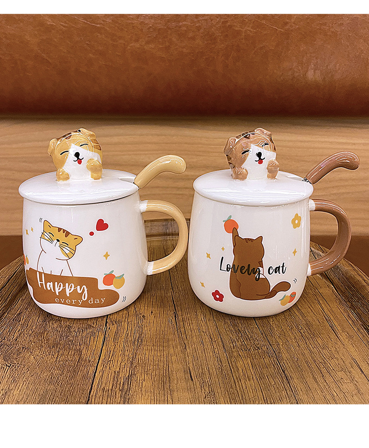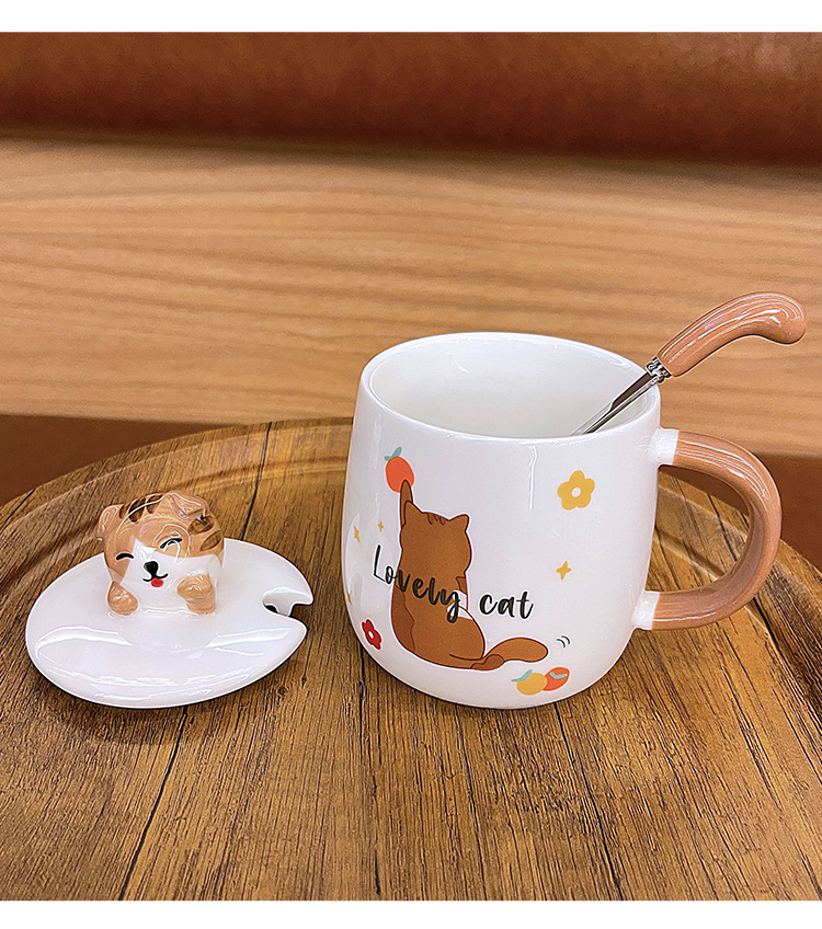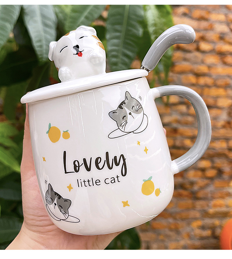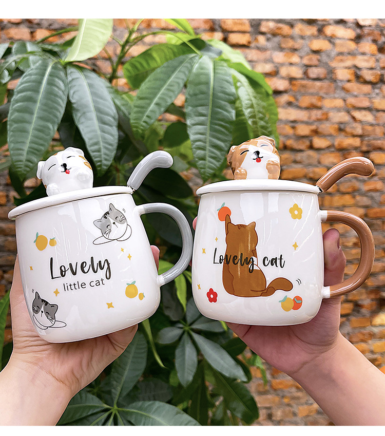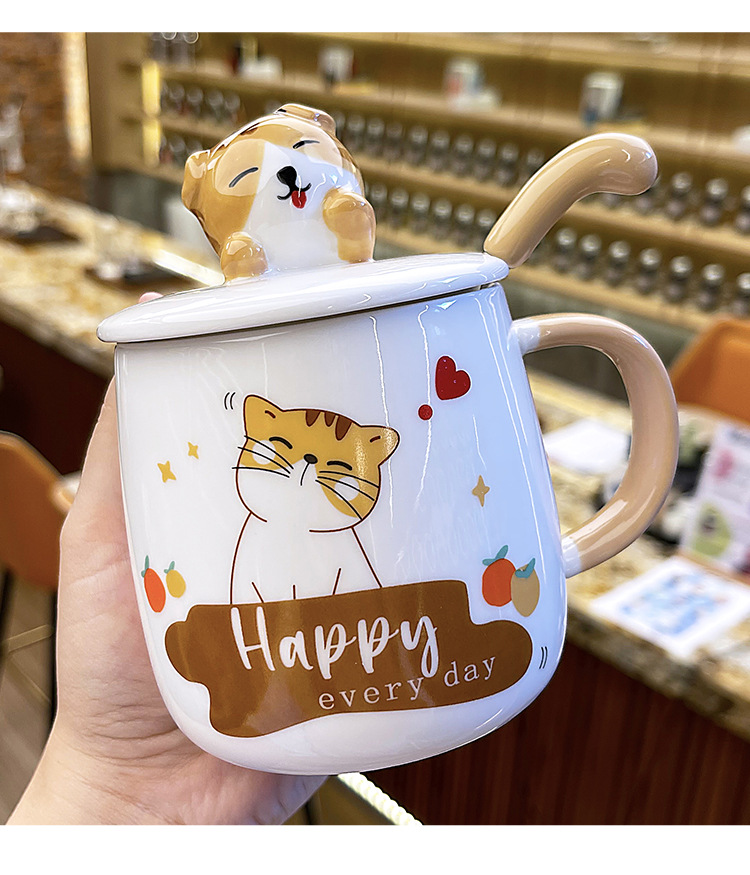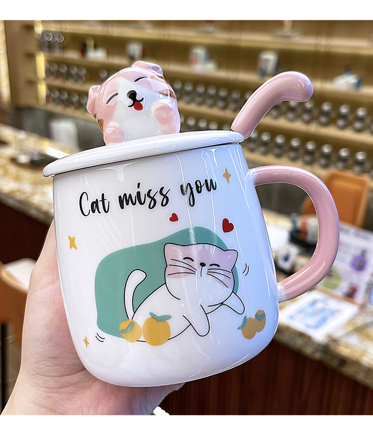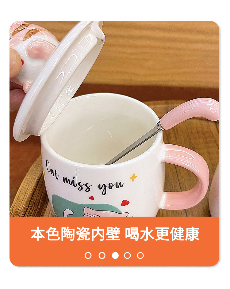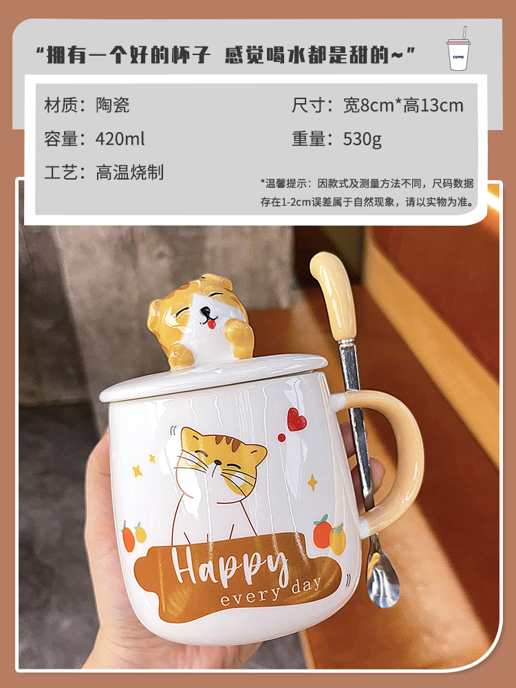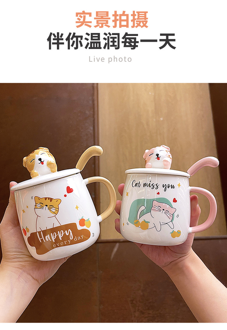 ins卡通可爱马克杯带盖勺高颜值陶瓷喝水杯子男女生设计感咖啡杯 English | 投诉