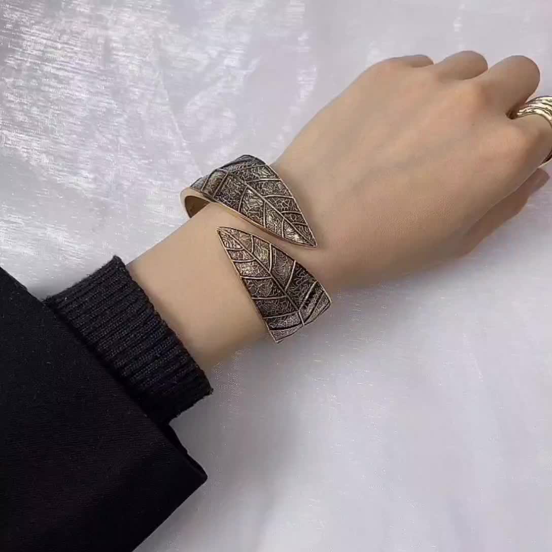 复古手镯批发亚马逊热卖爆款产品欧美外贸出口抹黑叶子时尚首饰品