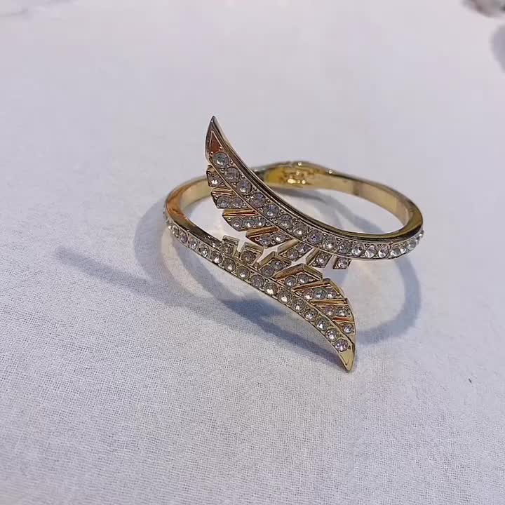 钻石手镯批发不规则时尚欧美外贸凤尾高级感轻奢风锌合金金色饰品 投诉