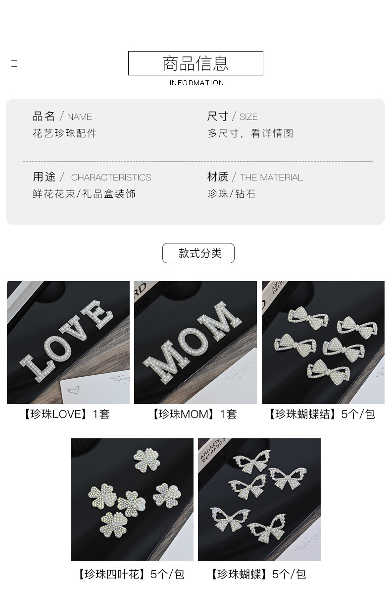 | 7 | 花艺珍珠配件 | LOVE/1个 | 2.88 | 包 | 200 | 576 |