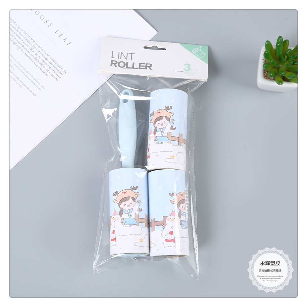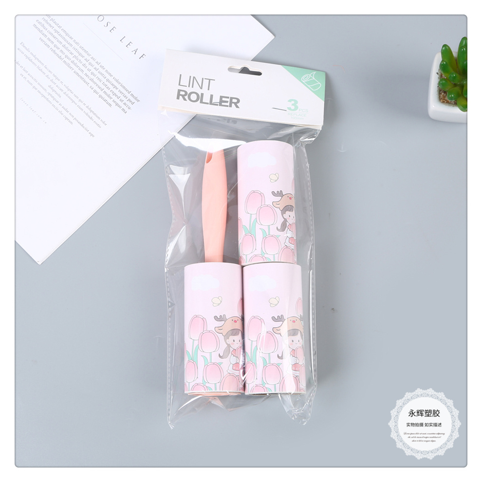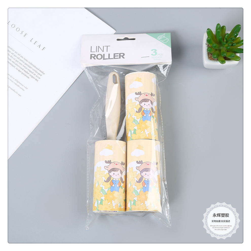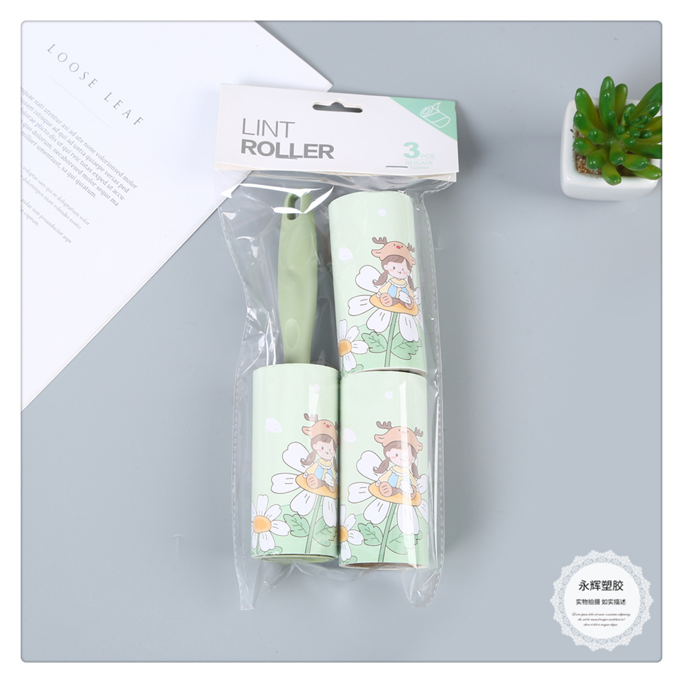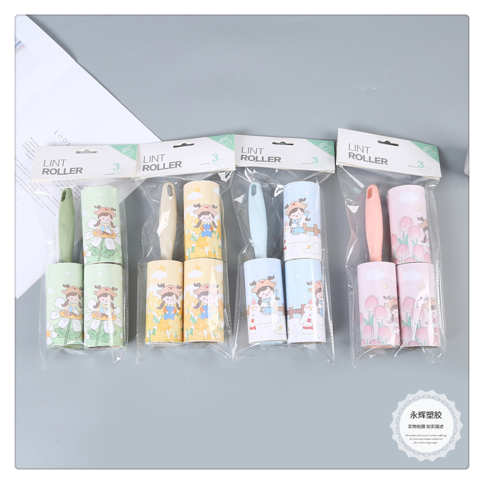 产品名称:小清新卡通女孩图案可替换滚筒刷 粘尘纸黏毛刷 毡灰衣服沾头发纸