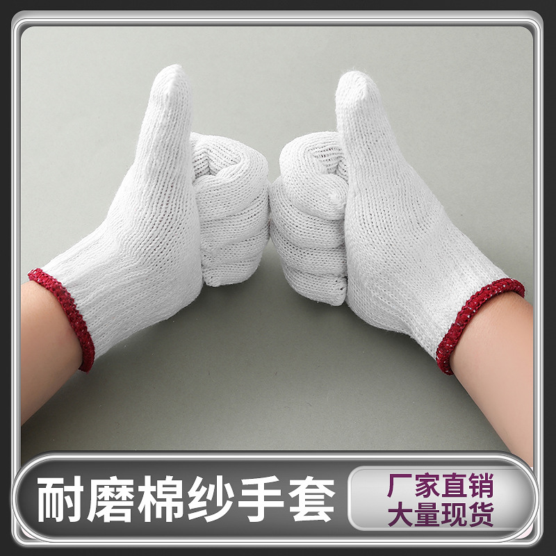 厂家直销700g漂白粗纱棉纱劳保手套批发防滑耐磨工地工作劳保手套