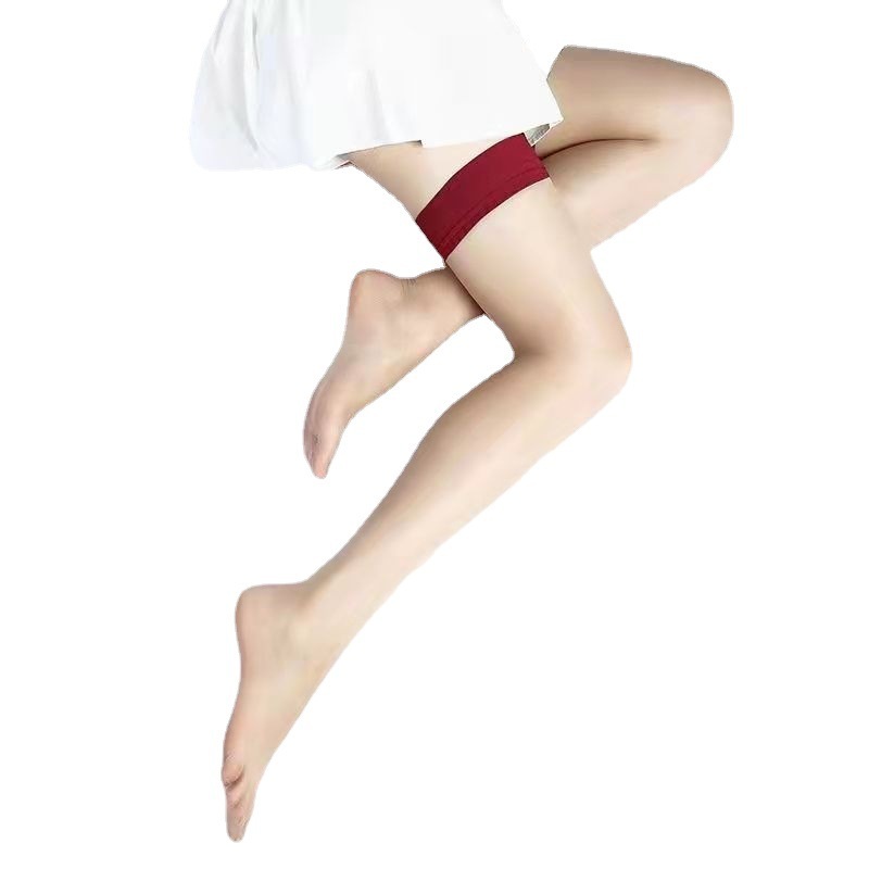 黑色ins网红性感红色边拼接性感大腿丝袜薄款黑丝纯欲长筒过膝袜夏季超柔天鹅绒不勾丝女士袜防滑耐穿钢丝短袜厂家直销