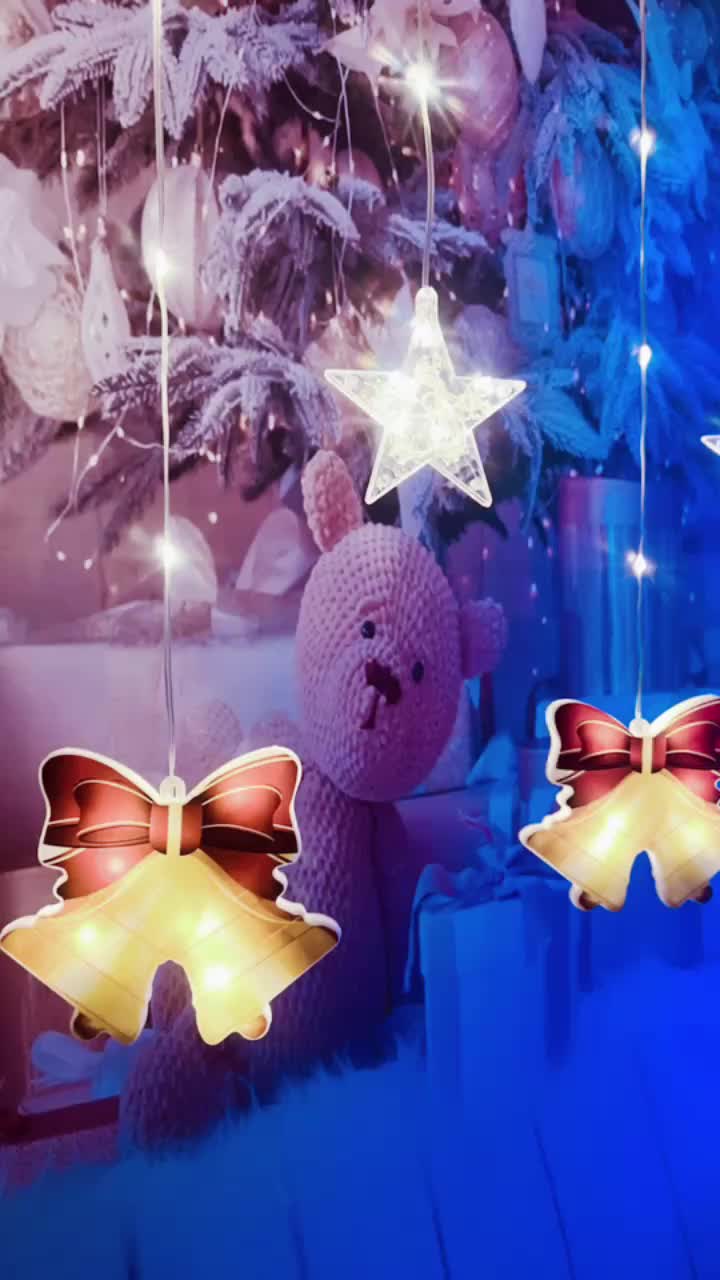 KKC10-1窗帘灯圣诞节日房间装饰彩灯创意小鹿铃铛圣诞树窗帘