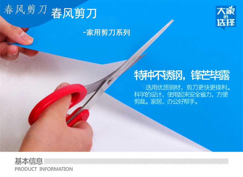 • 春风剪刀坚定信心为我们的产品在品质、价格和服务等方面奠定了优质、良好的基础。多年来秉承着诚信第一、顾客至上的信念与您携手共进,共创辉煌!竭诚欢迎广大新老客户前来参观洽谈。