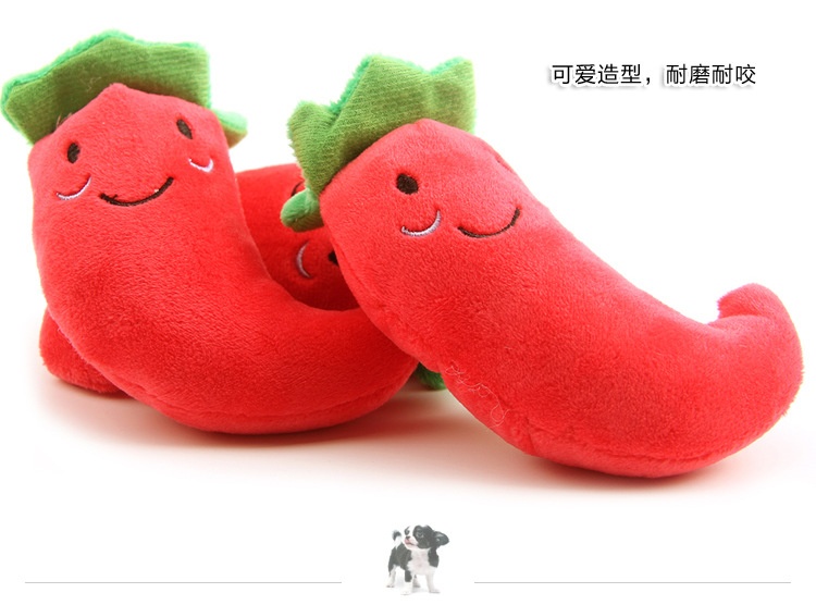 批发新款宠物玩具 毛绒发声红色辣椒 14*6cm 宠物毛绒玩具