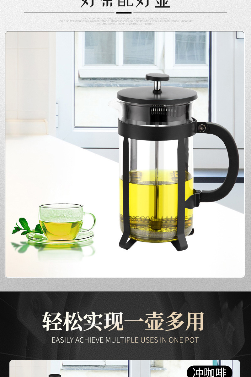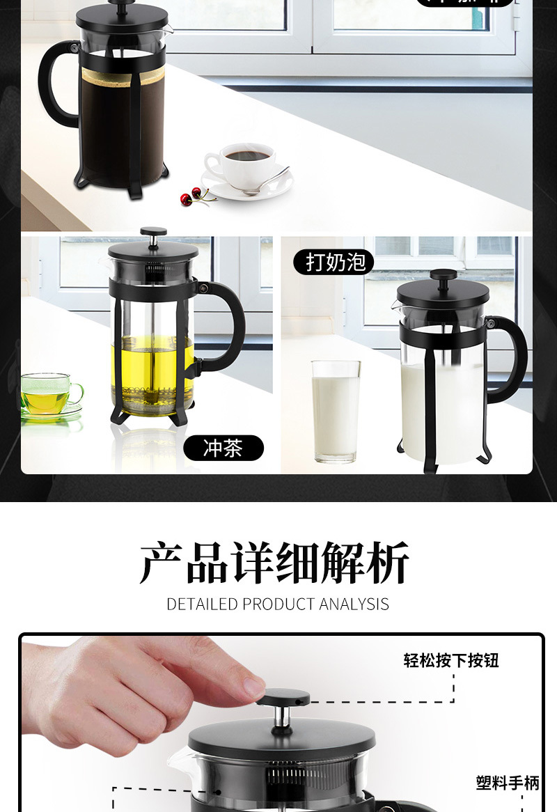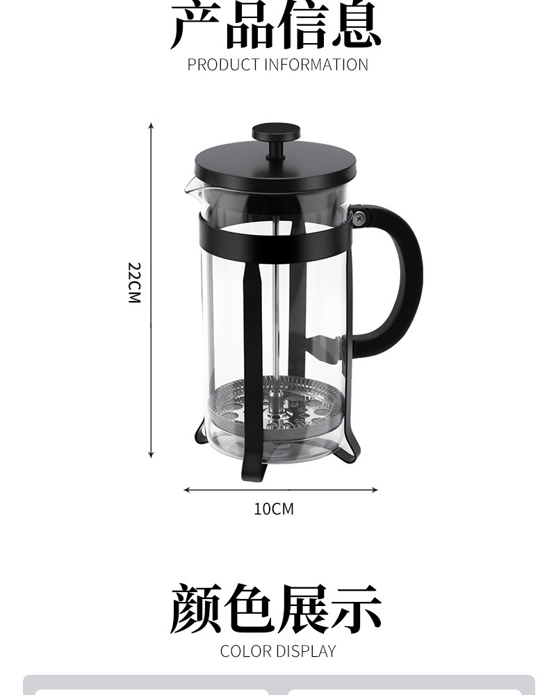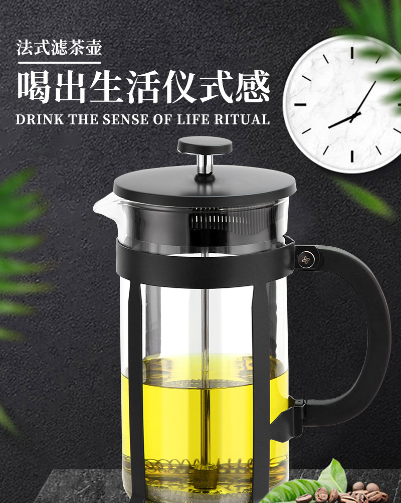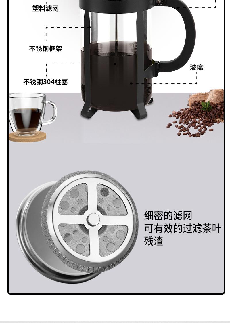 304不锈钢法压壶法式滤压咖啡壶手冲咖啡器具冲茶器耐热防爆玻璃