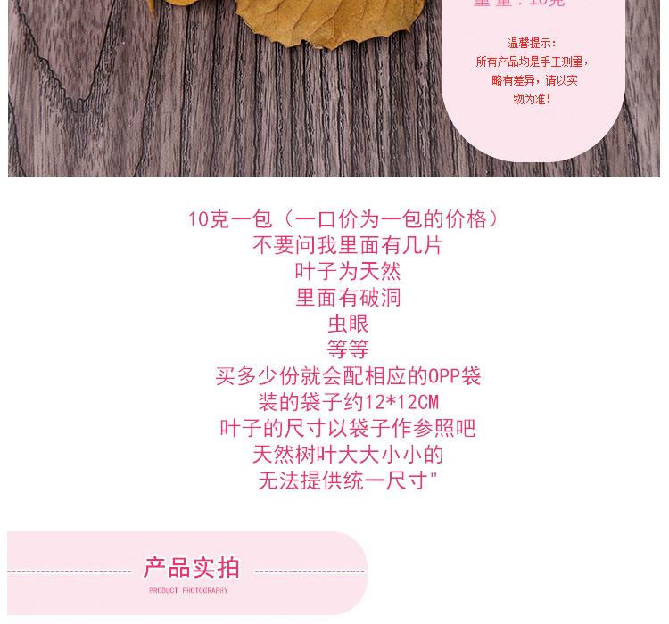 01色差说明:因拍照的背景.光线.及电脑显示器还原度的不同而造成的商品色差和色彩会有所不同,不在可控范围内,不属于质量问题。商品以实物为准。基本都是手工加工而成,对色差及小瑕疵很在意的请仔细考虑后再决定是否订购。