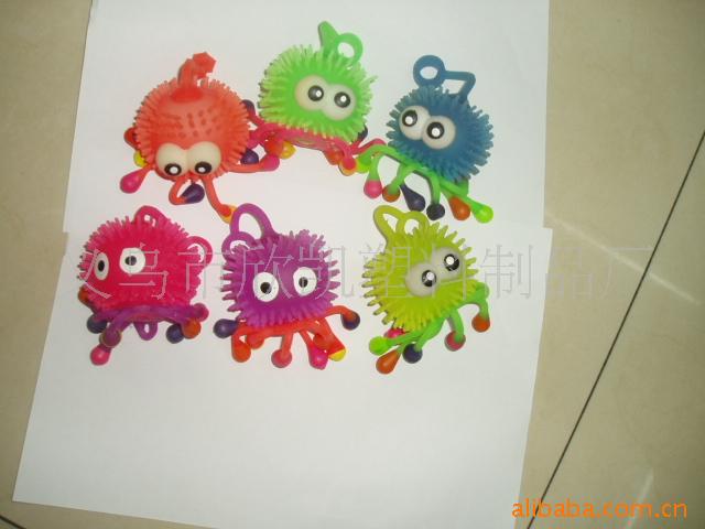 本厂专业生产各式软胶玩具如:毛毛球,碰碰球,弹跳球,挤捏球,吸盘球等闪光和不闪光新奇玩具.现又开发出一款新型的运动球,造型可爱,深受小朋友的喜欢和青睐。