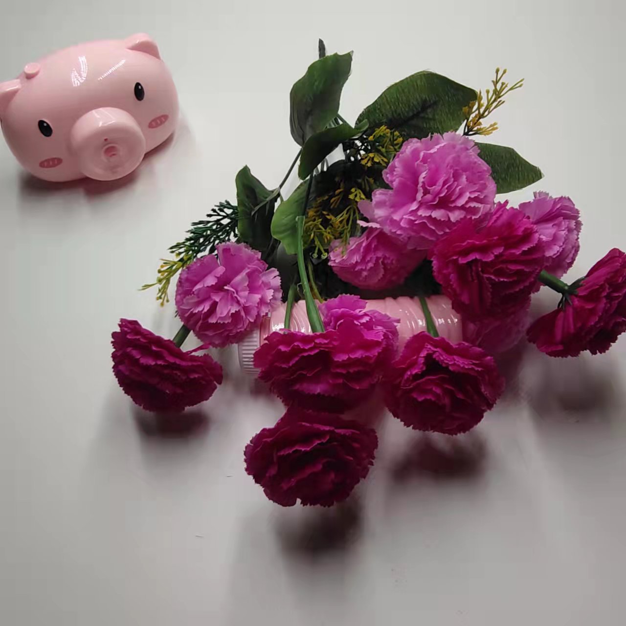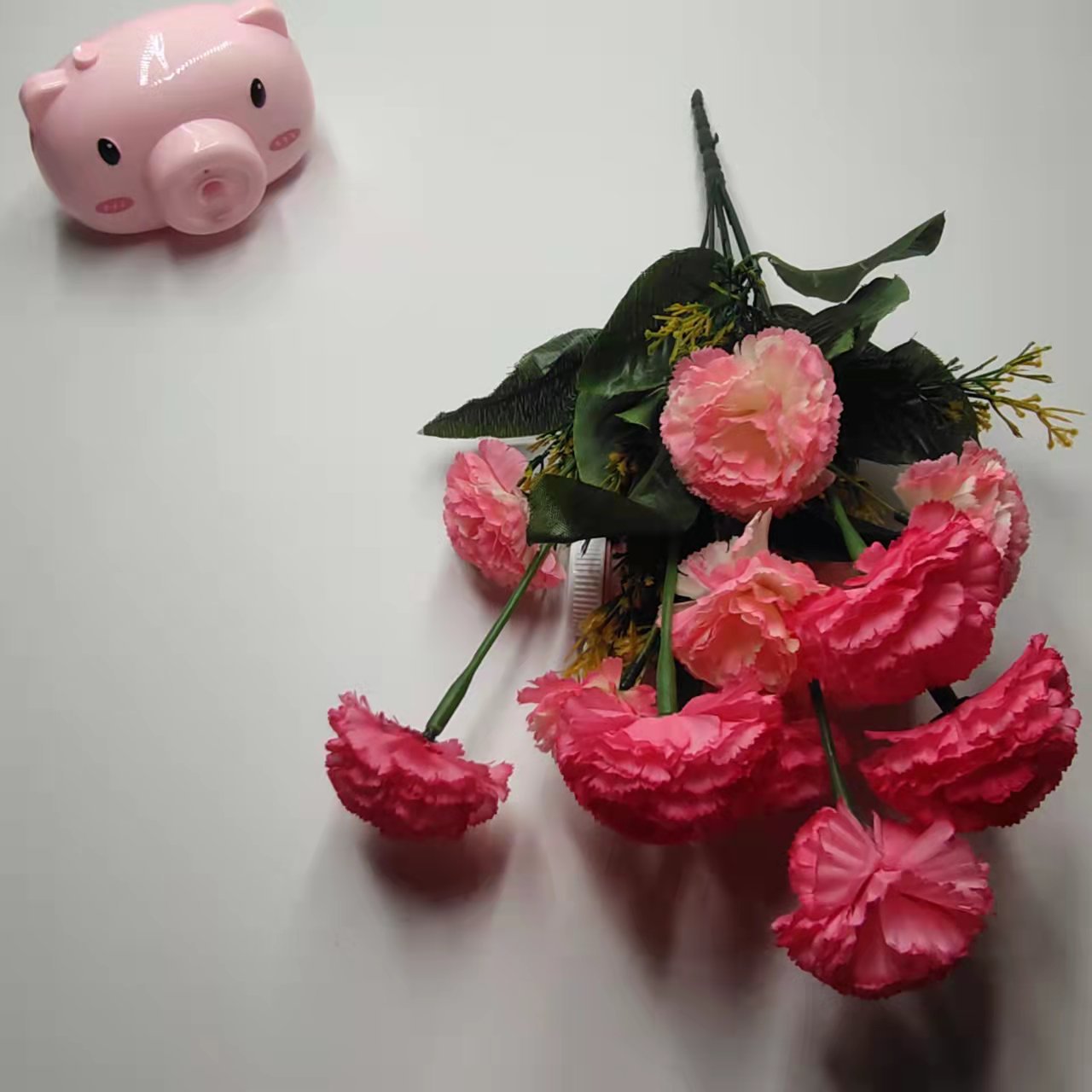 外贸仿真花婚庆仿真花单束康乃馨亮丁手捧假花客厅装饰摆件餐桌绢 English | 投诉