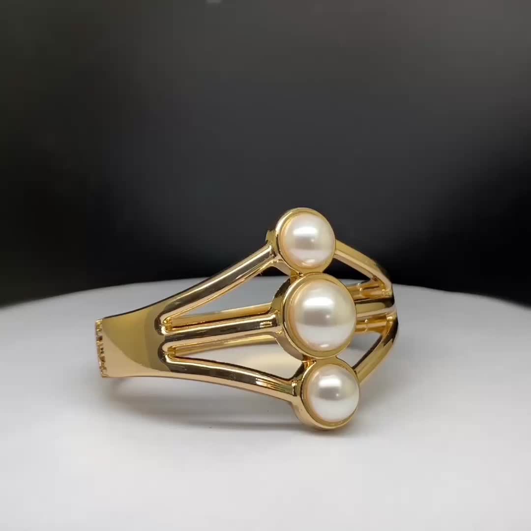 珍珠手镯大金属锌合金开口欧美夸张宽边时尚外贸源头工厂直销饰品 投诉