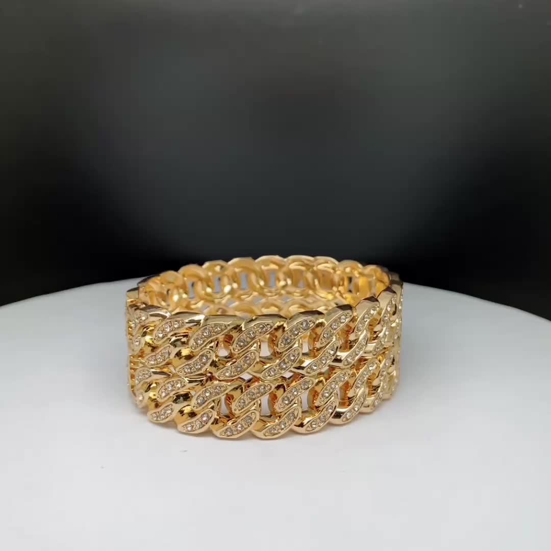 镂空手镯批发镶砖链条金色小众个性夸张风欧美外贸批发热销手饰品
