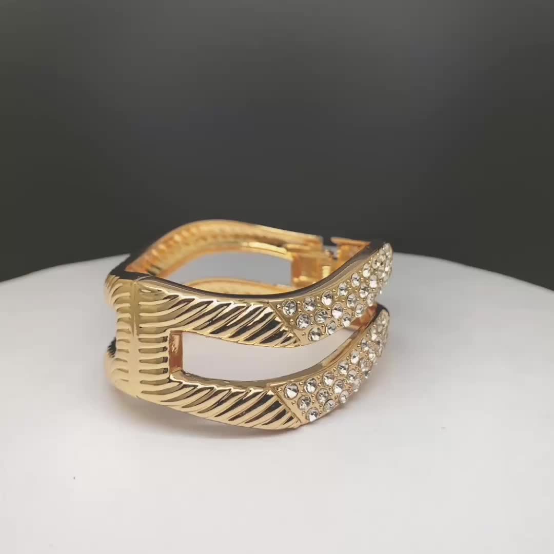 砖石手镯金色双边镶砖原创设计个性不规则跨境爆款厂家直销手饰品 投诉