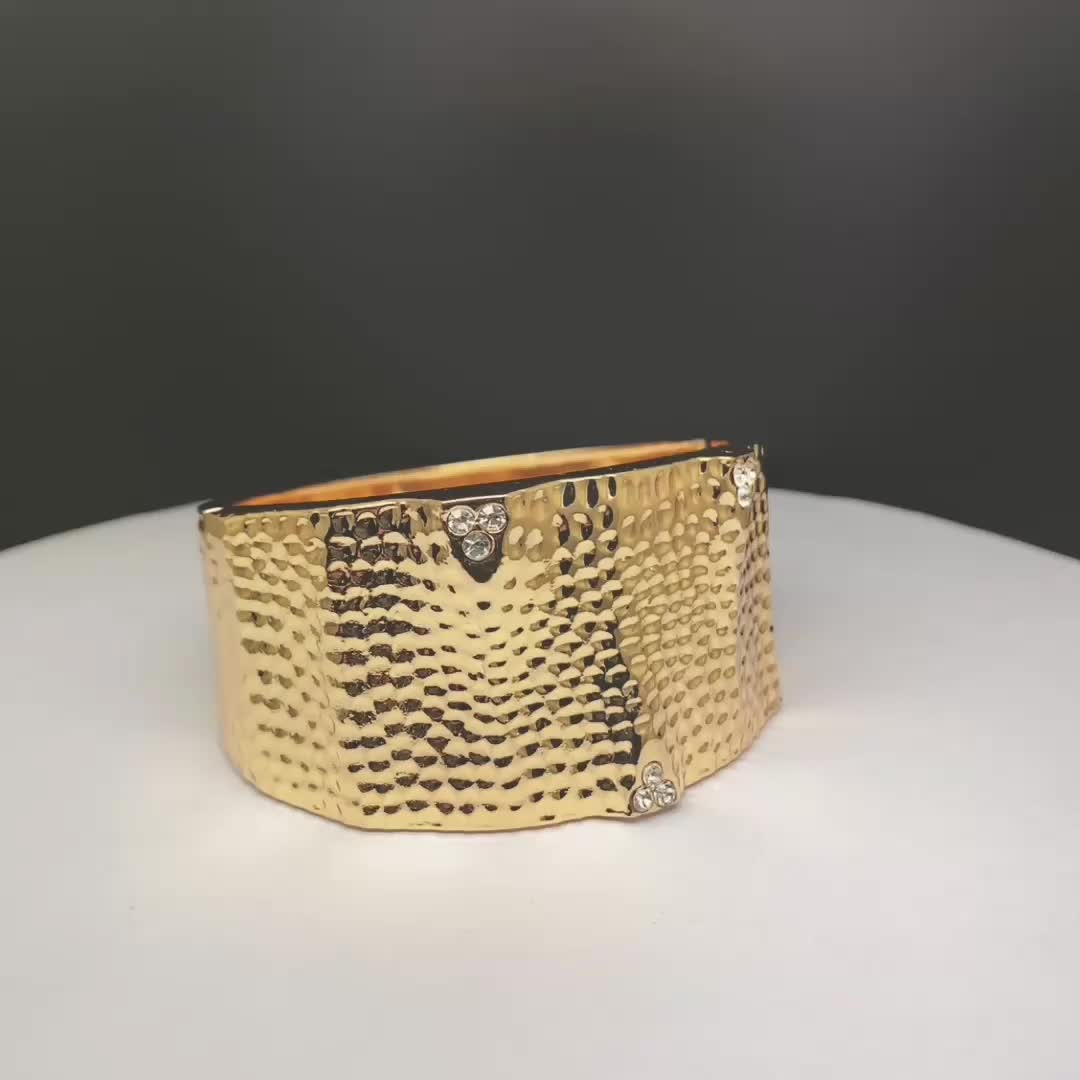 金手镯厂家直销镶砖欧美不规则夸张个性风宽面款原创设计服饰饰品