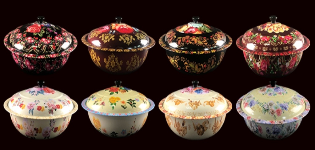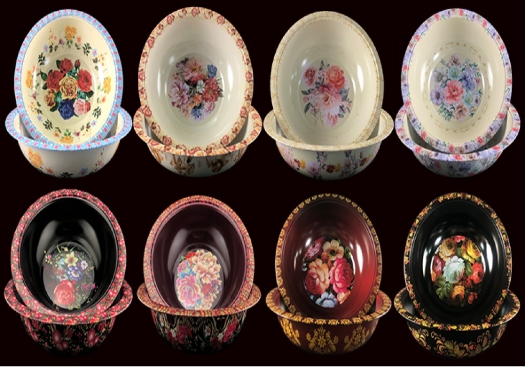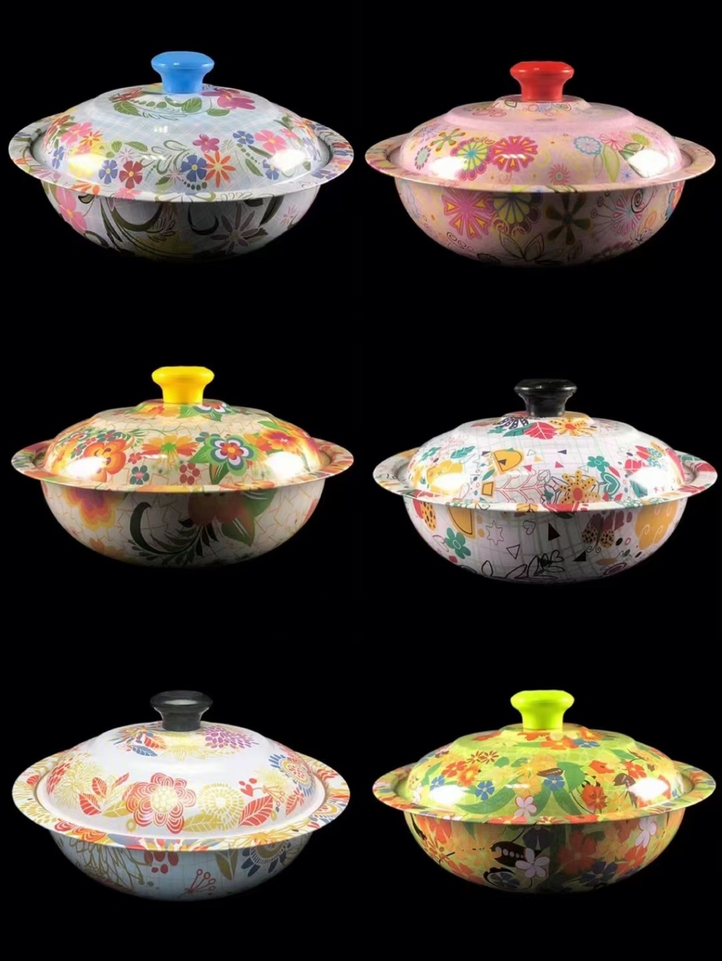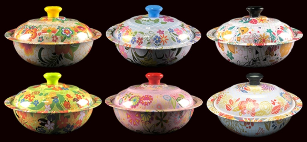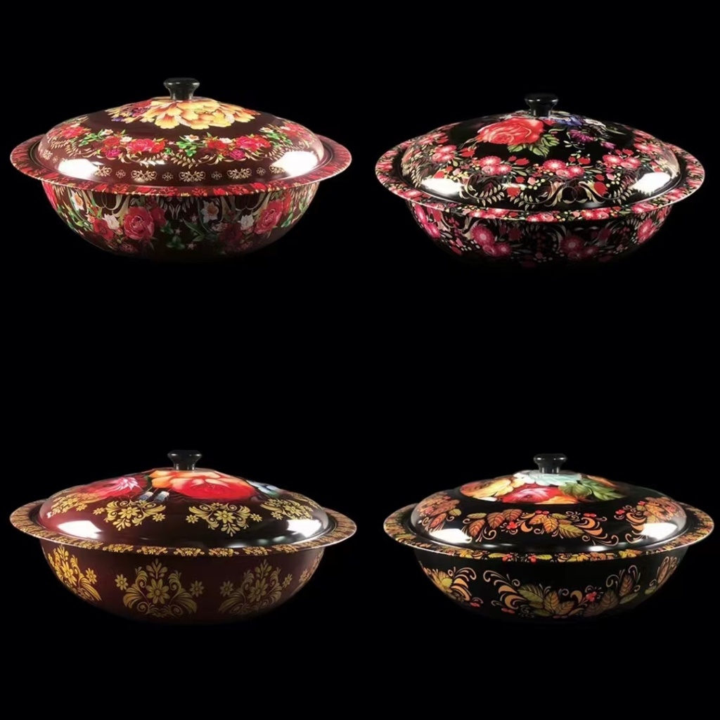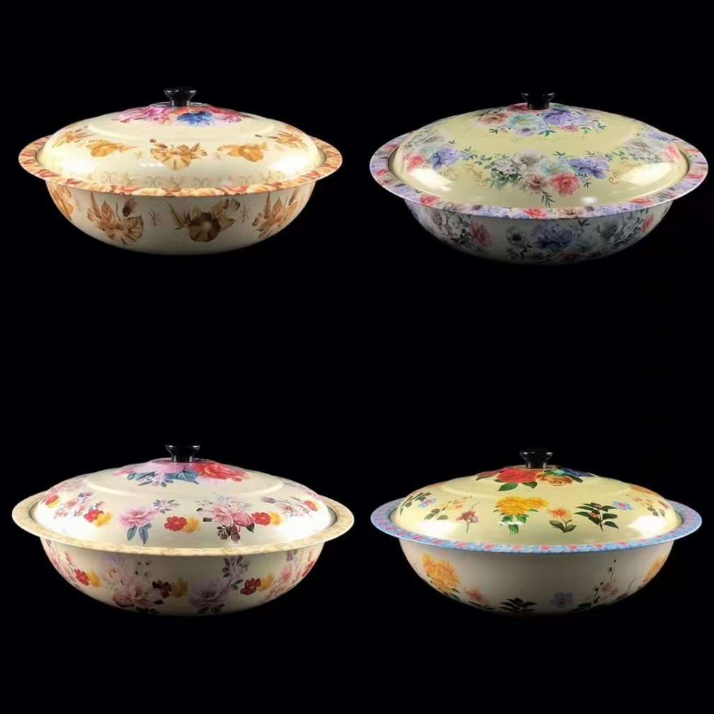 西式铁不锈钢带盖彩花果盆工艺盆水果盆蔬菜盆汤盆置物盆印花盆