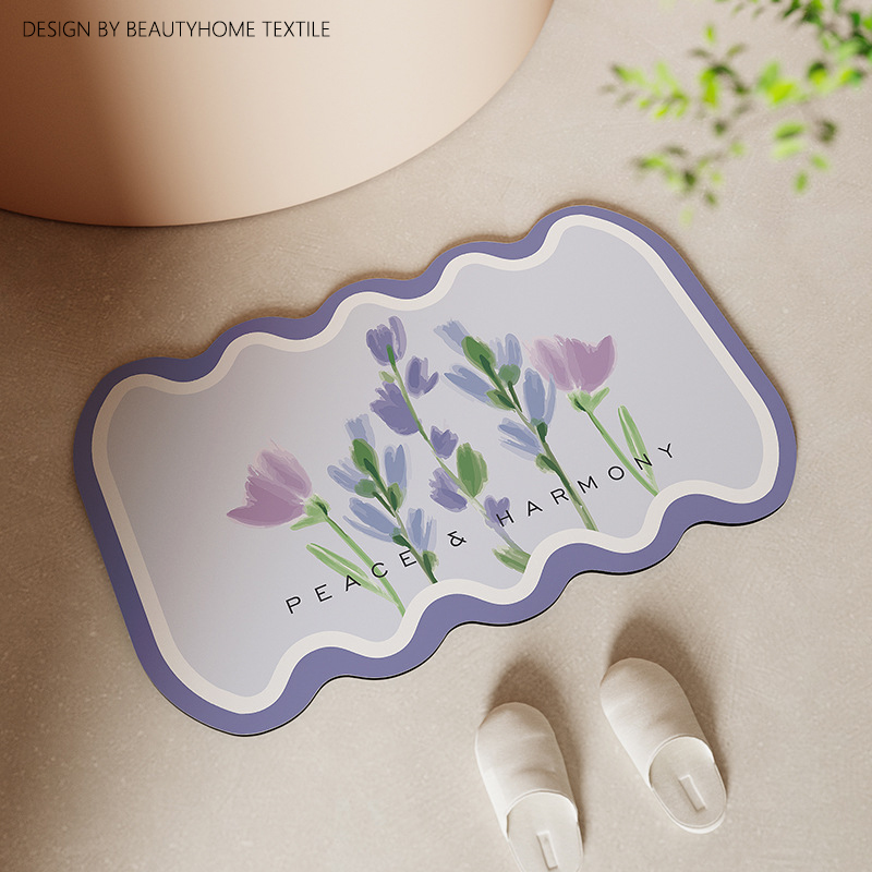 硅藻泥田园小清新花朵浴室地垫软卫生间门口吸水防滑脚垫门垫 English | 投诉
