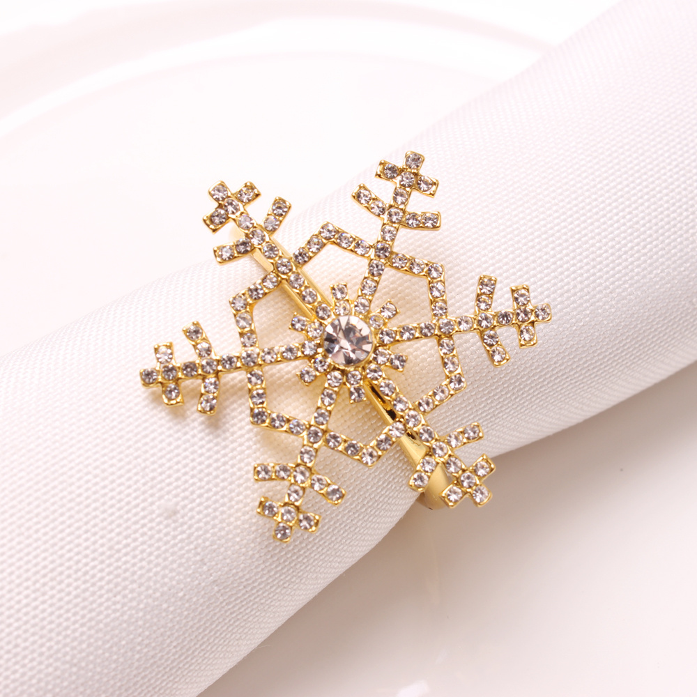 供应圣诞酒店摆台金属点钻雪花餐巾环餐巾圈餐巾扣