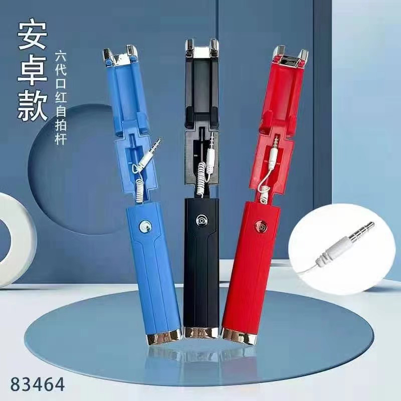 y6自拍杆有安卓、苹果、华为、3种、10M蓝牙遥控:线控材料:PU+pvc+漆包铜线:手柄材料:ABS+PVC:拉伸尺寸:18.5CM-70CM、产品重量94克:含包装112克