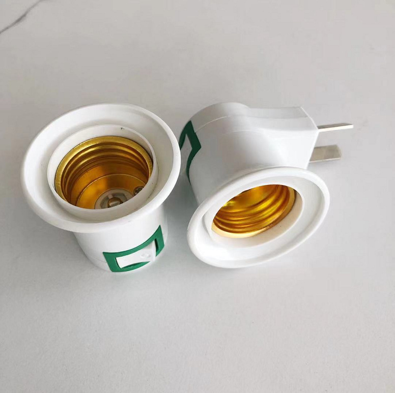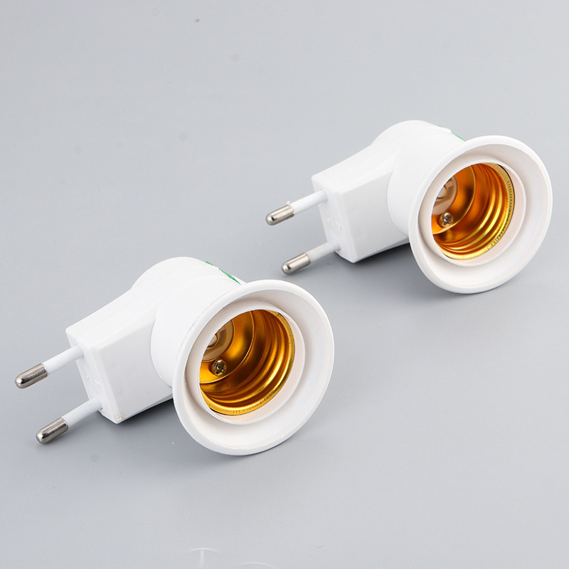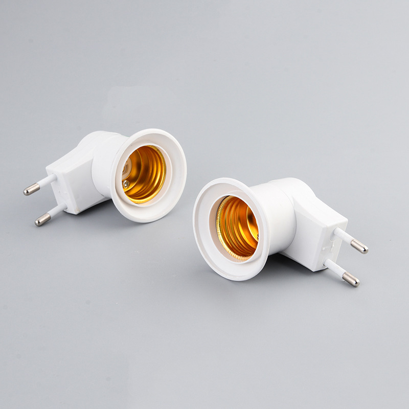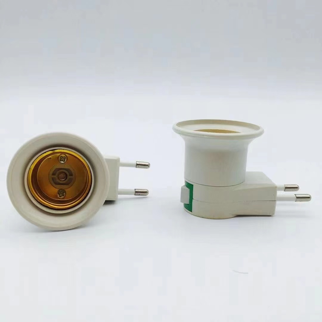 外贸款欧规两脚圆插带开关灯座 E27螺口移动插壁式灯座转换灯头