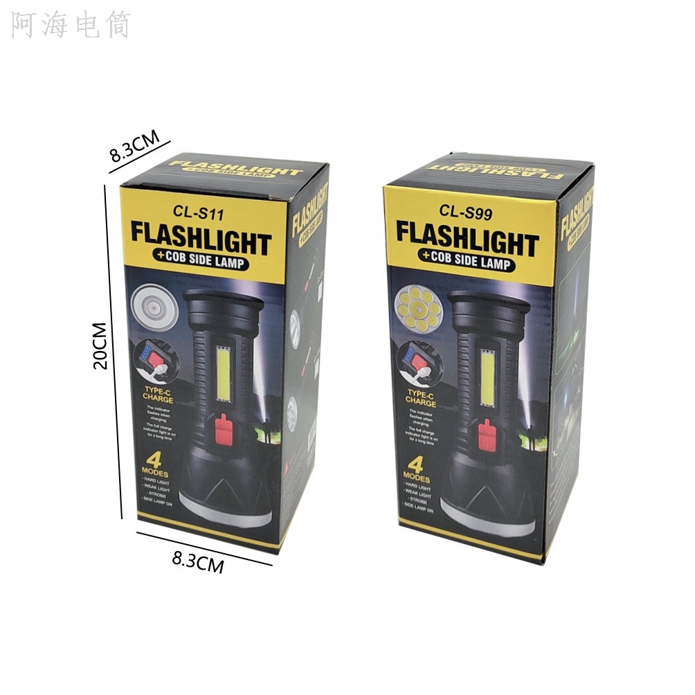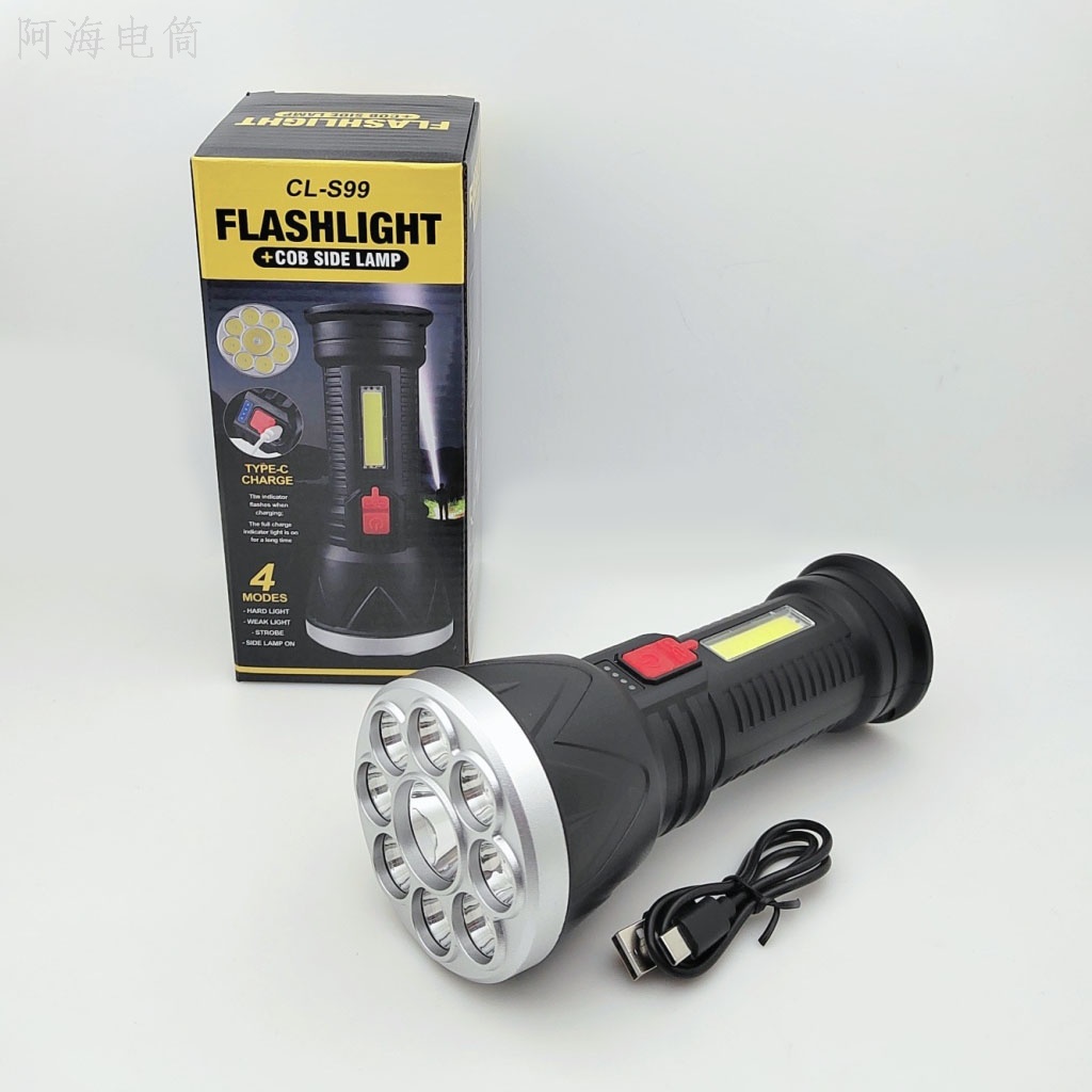 新款1头9头手电筒电量显示type-C快充带侧灯手电筒