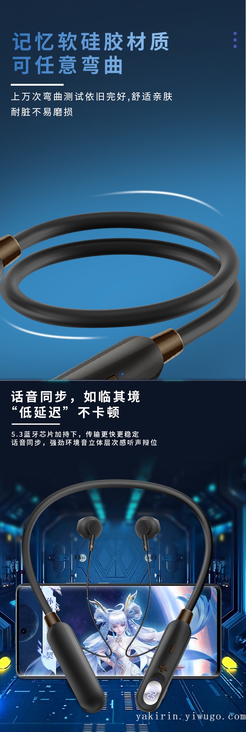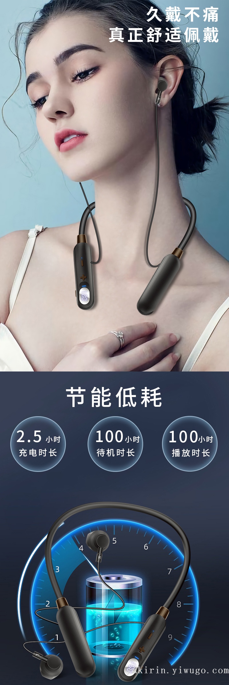 2022新款创意立体防水防汗数显降噪磁吸设计运动挂脖无线蓝牙耳机 投诉