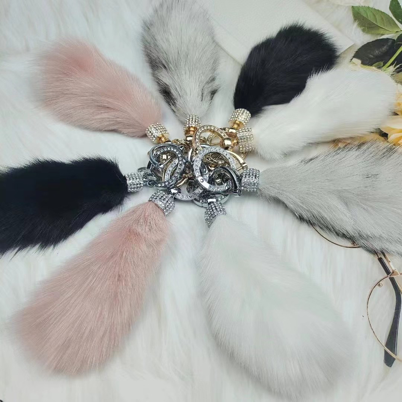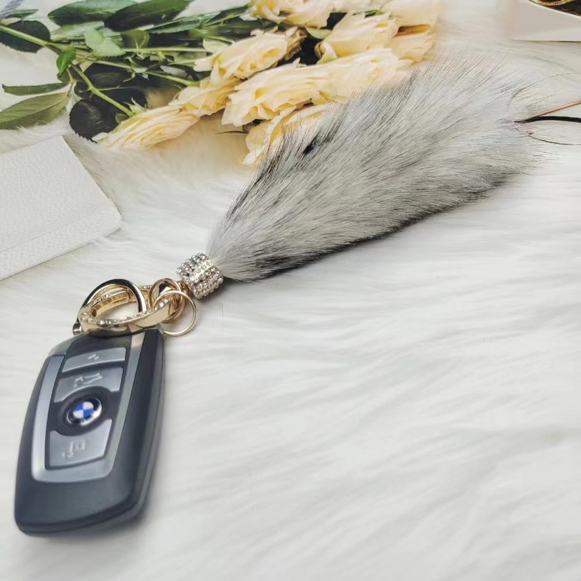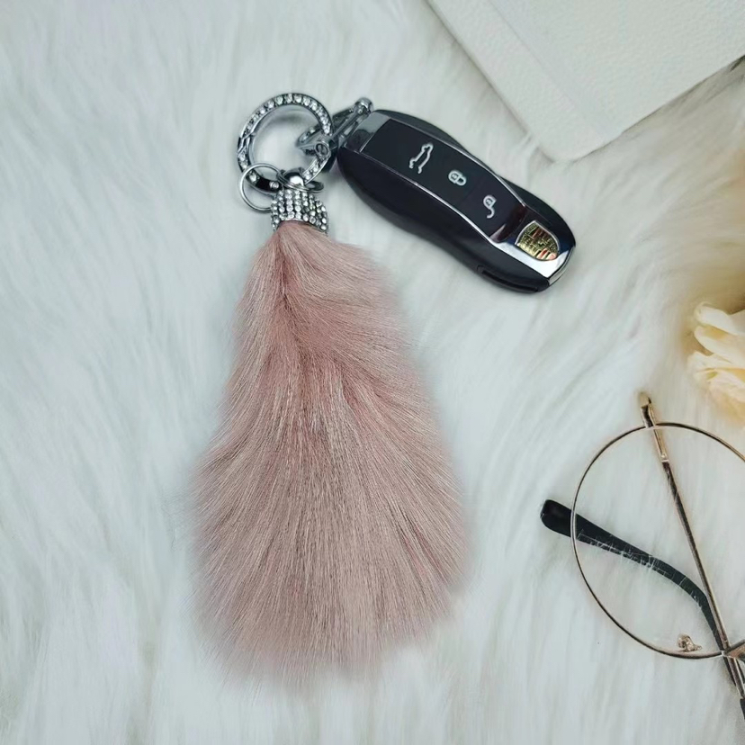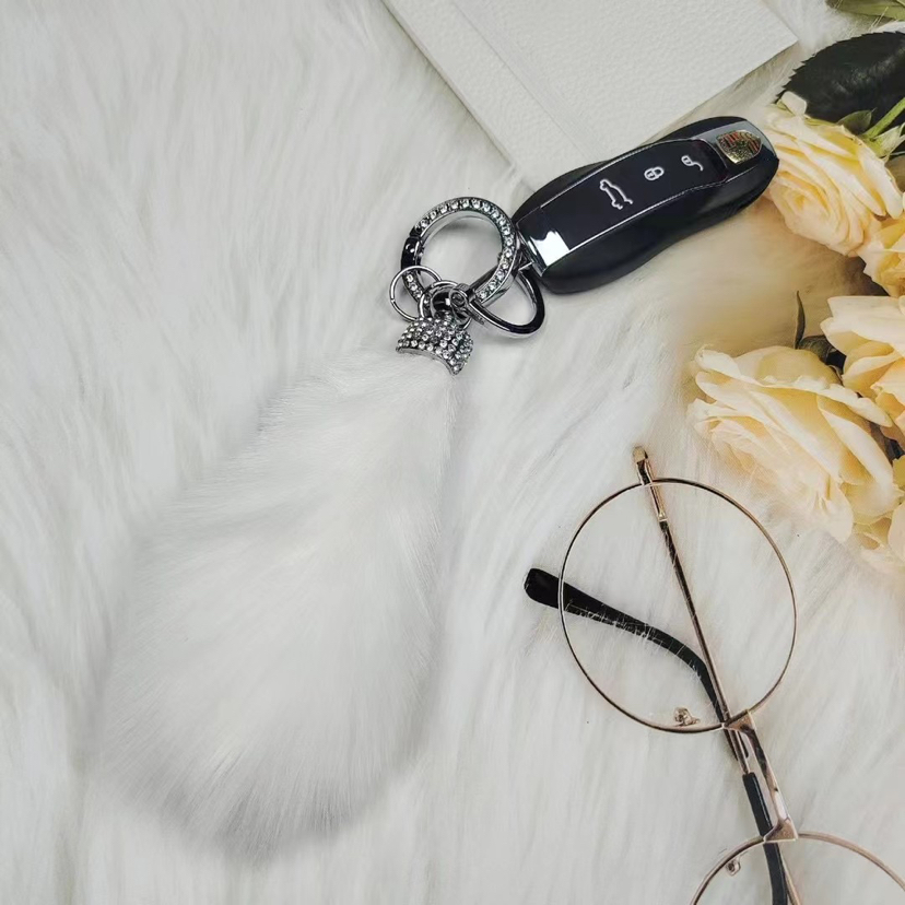 金属锌合金毛球尾巴满钻钥匙扣挂件