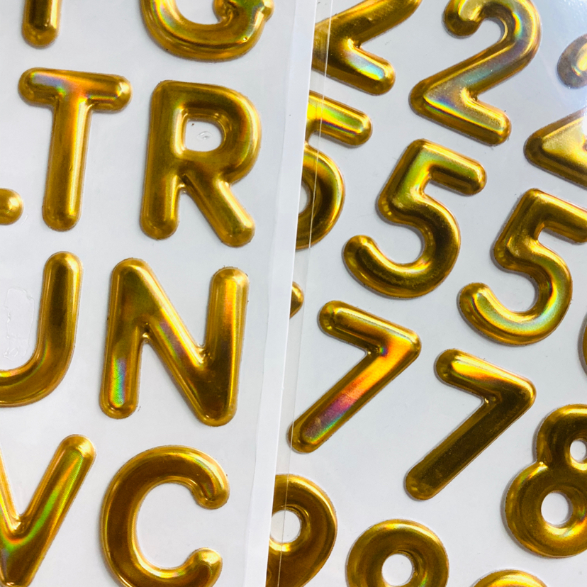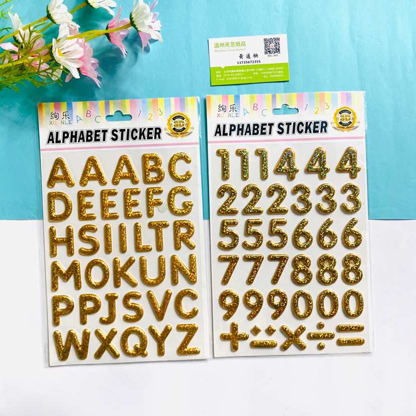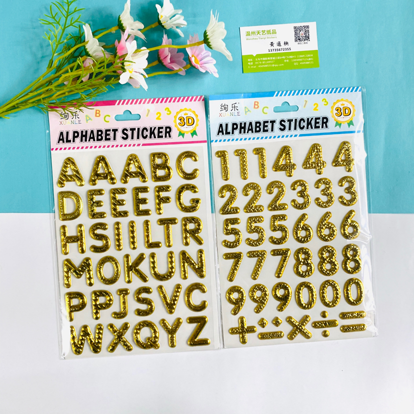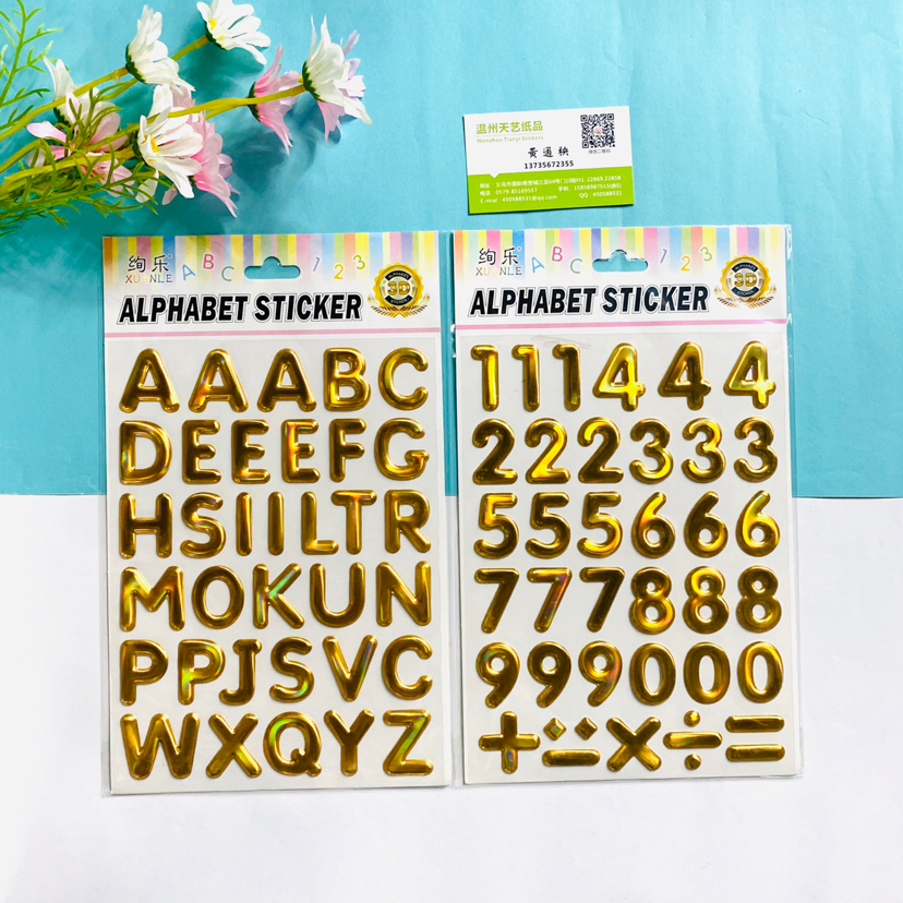 TJJ英文字母数字TJI英文数字金色银色彩色立体贴纸