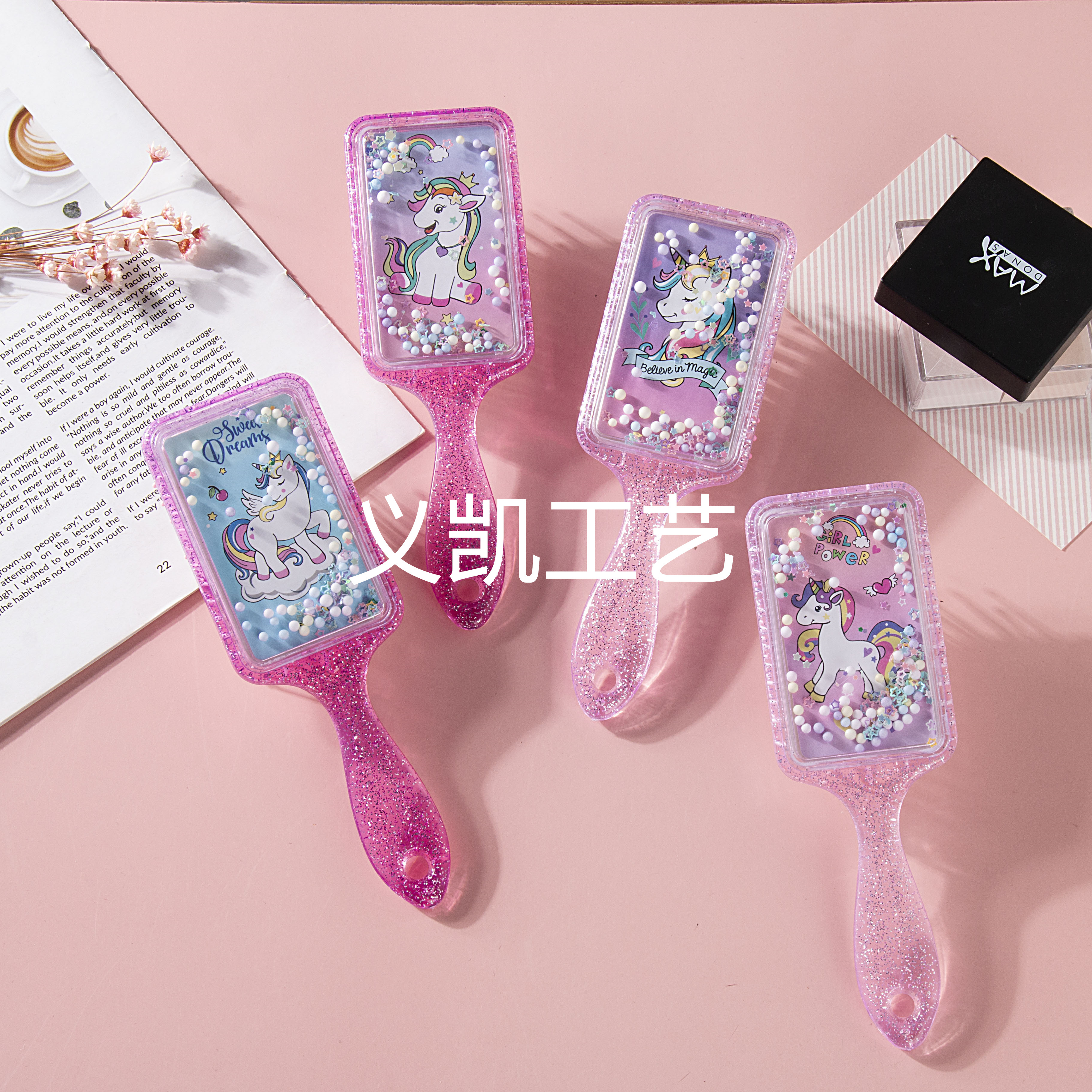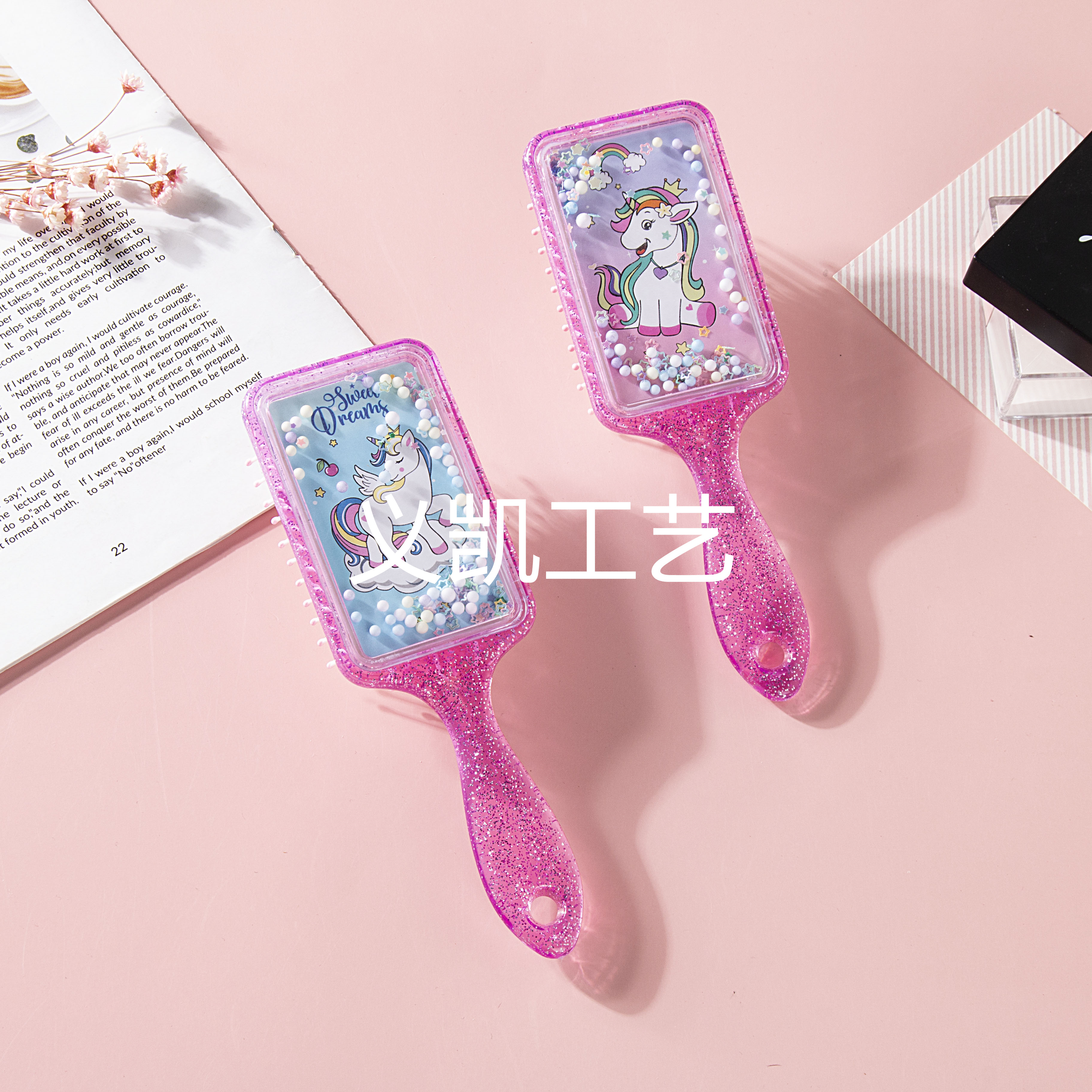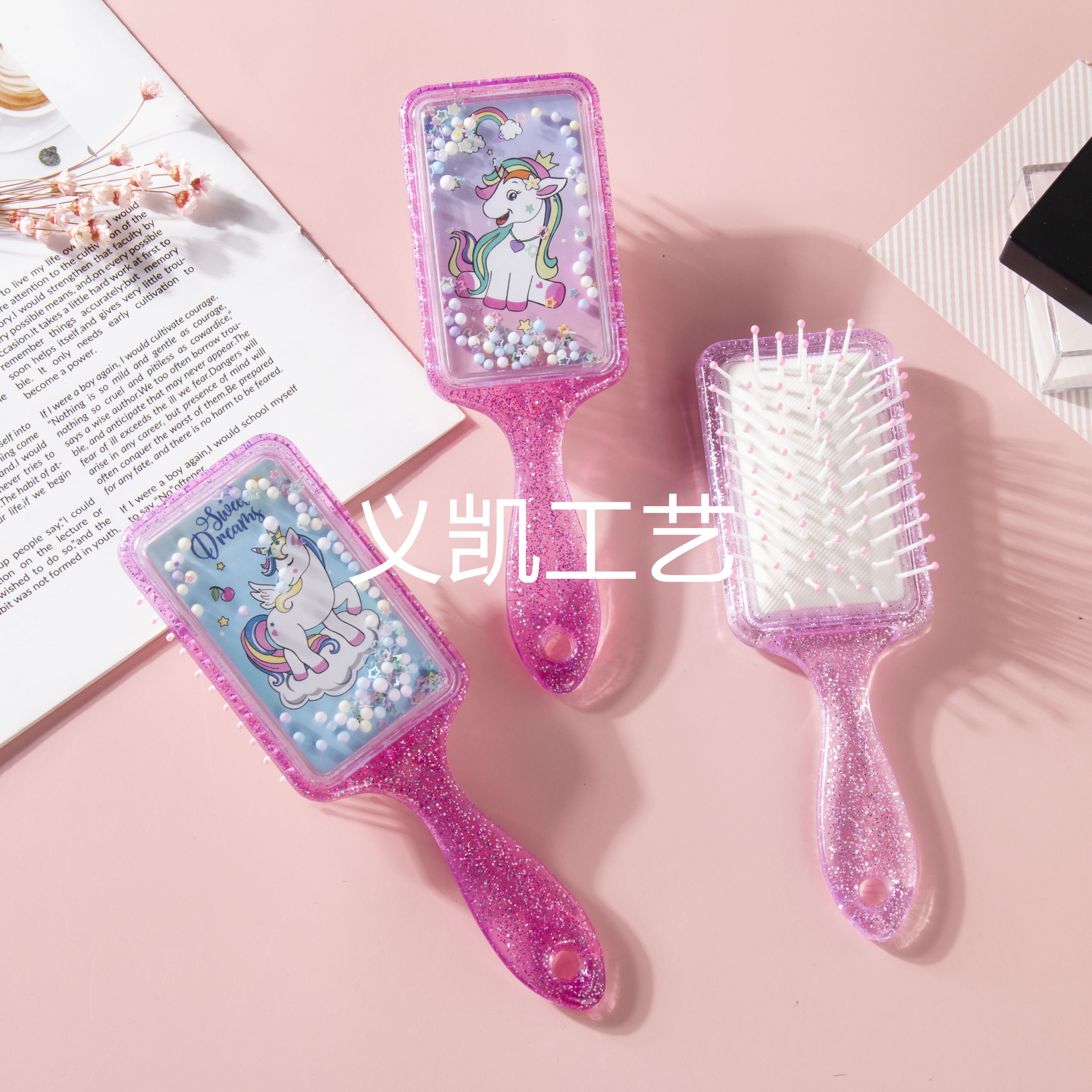 方形流沙亮片女孩梳按摩梳可爱卡通小清新外贸梳爆款化妆梳妆 English | 投诉