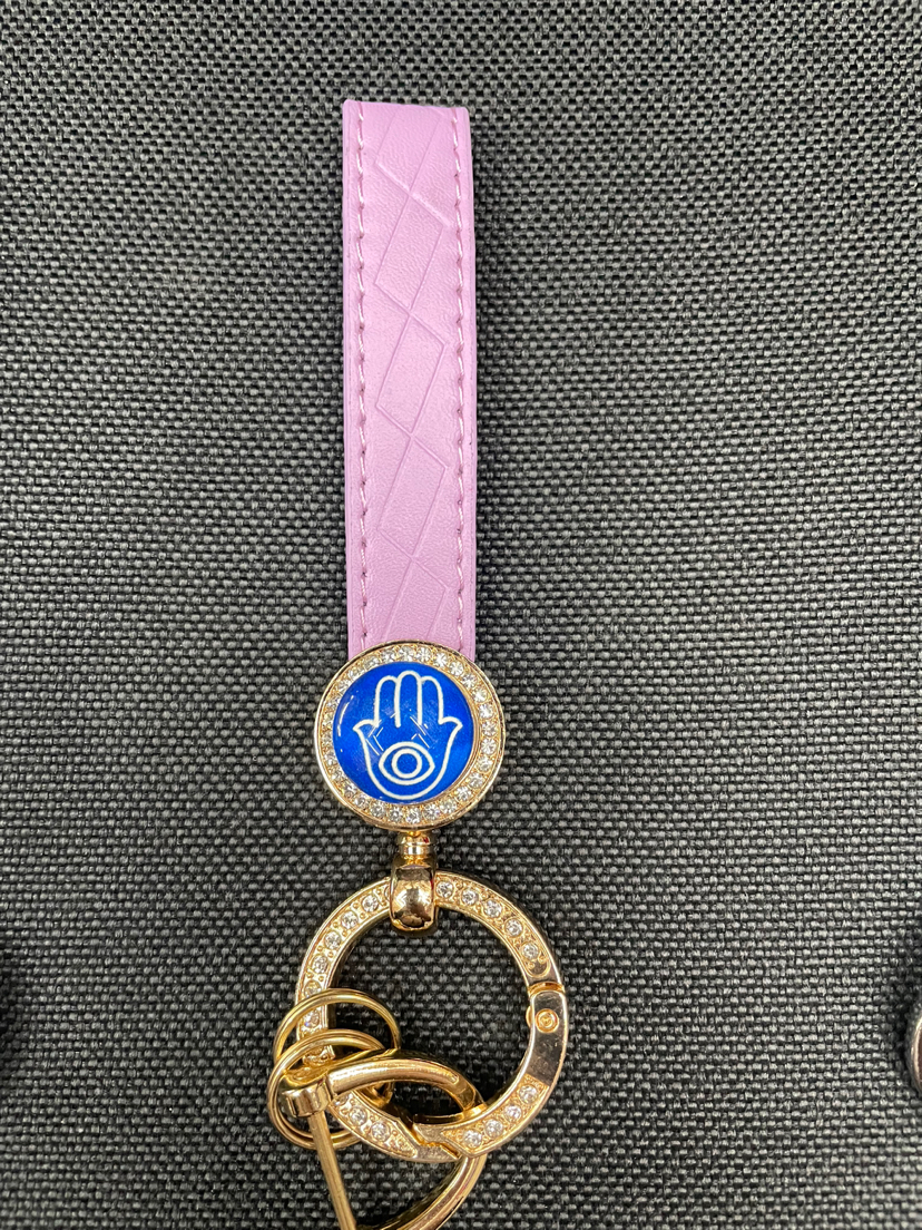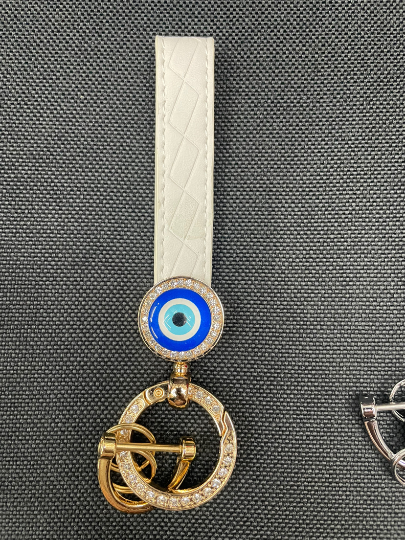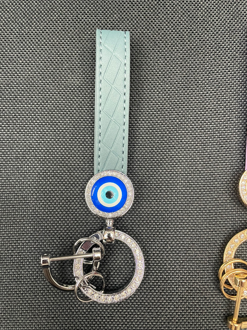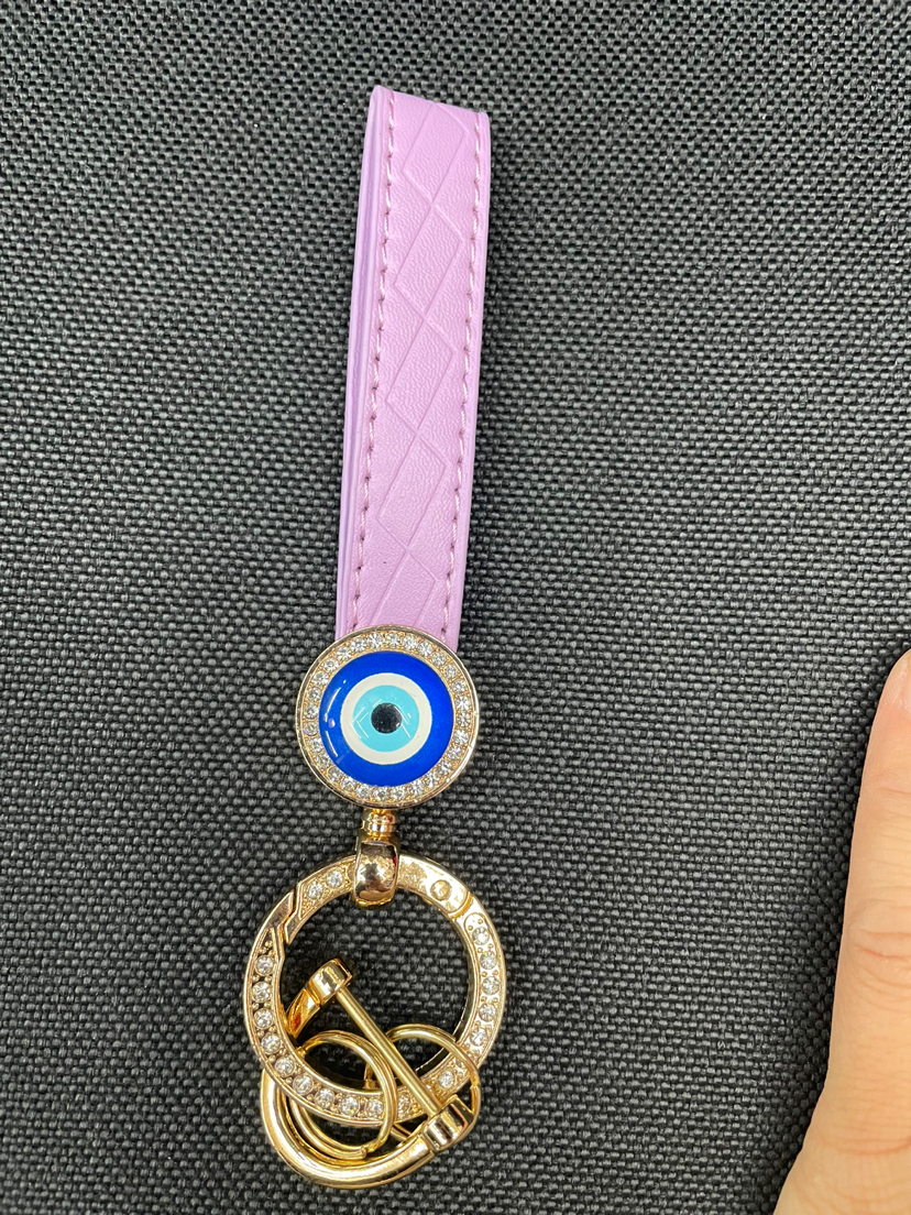 金属锌合金压铸PU超纤带钻眼睛钥匙扣挂件 投诉