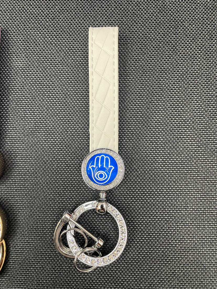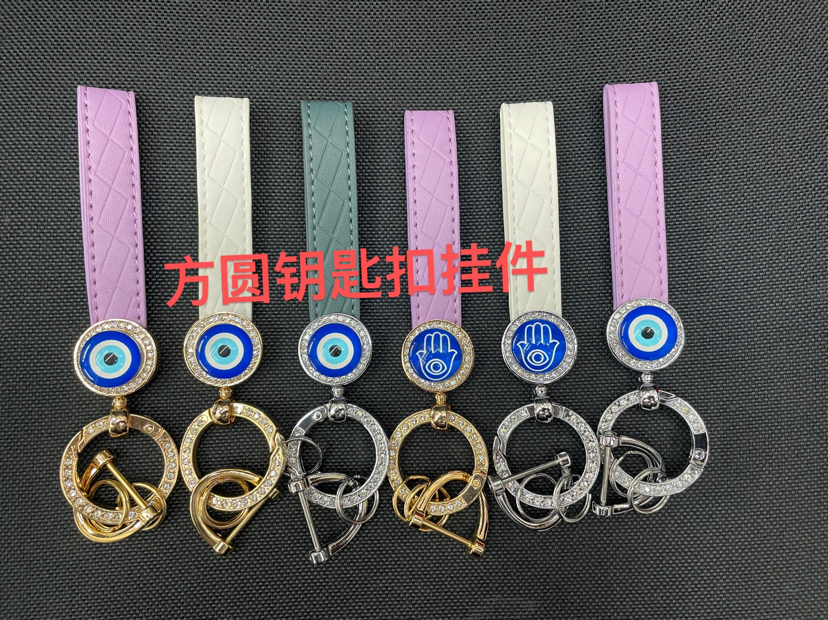 金属锌合金压铸PU超纤带钻眼睛钥匙扣挂件