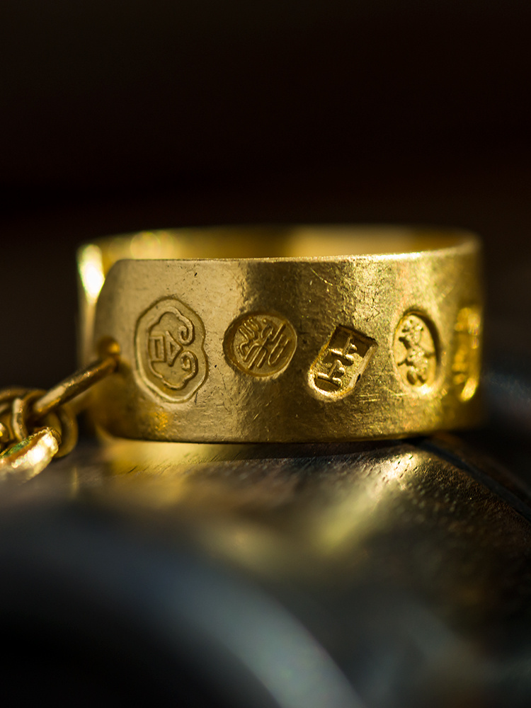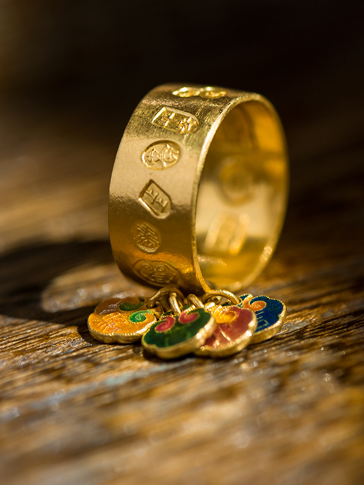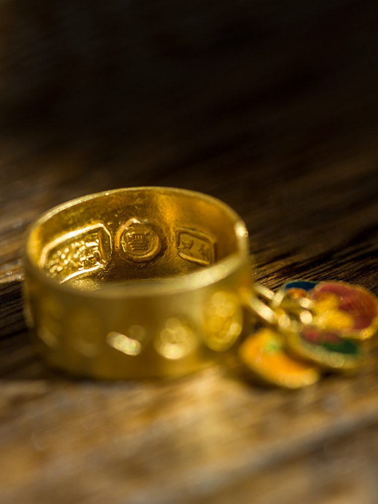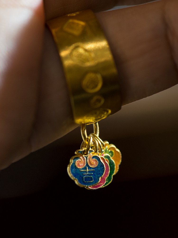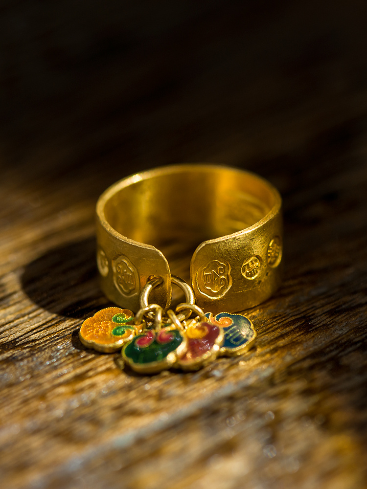 999纯手工黄金戒指+999烧蓝吊坠 时尚款
