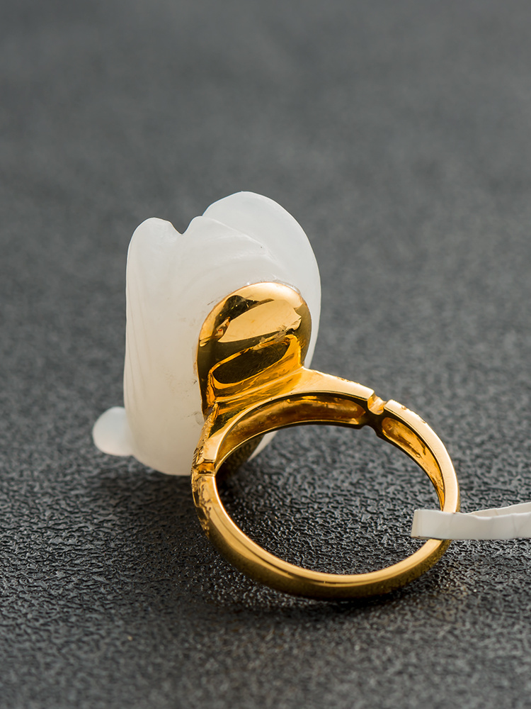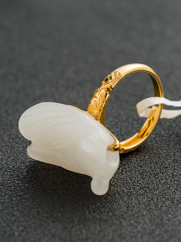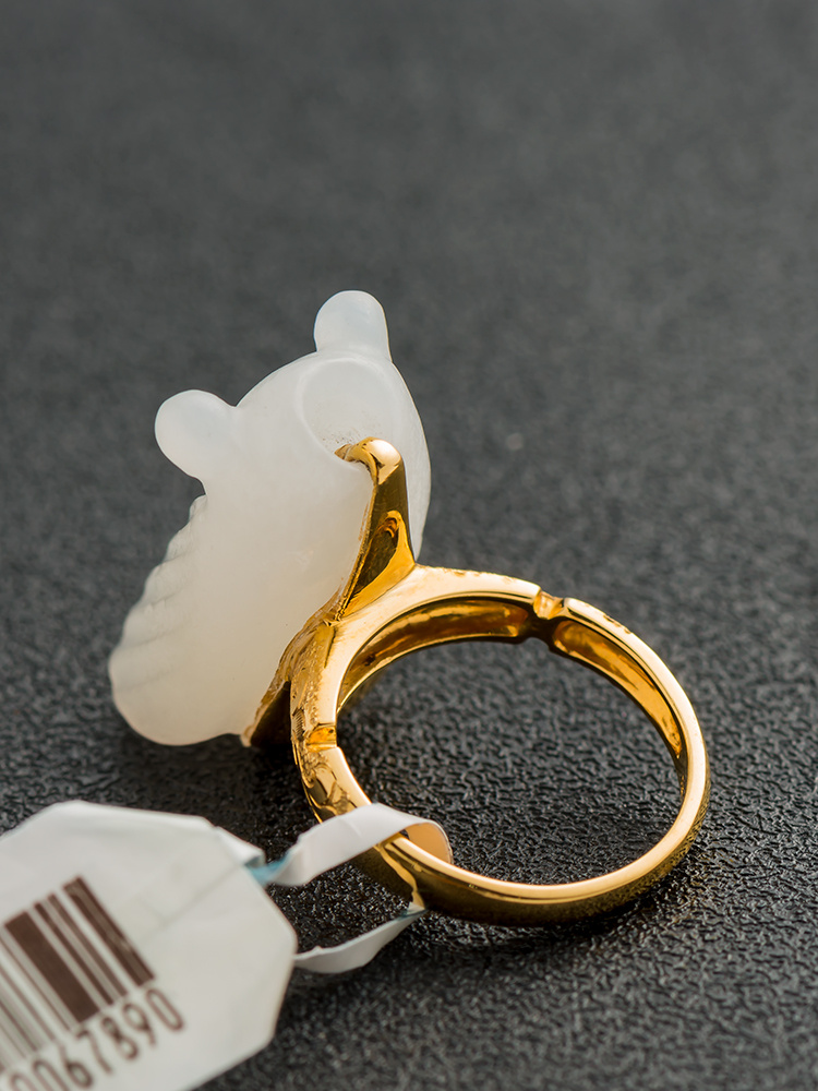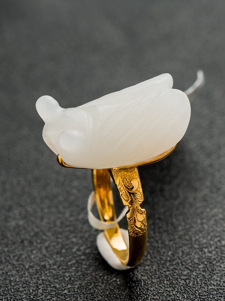 和田玉籽料蝉戒 18k金镶嵌 大气款 投诉