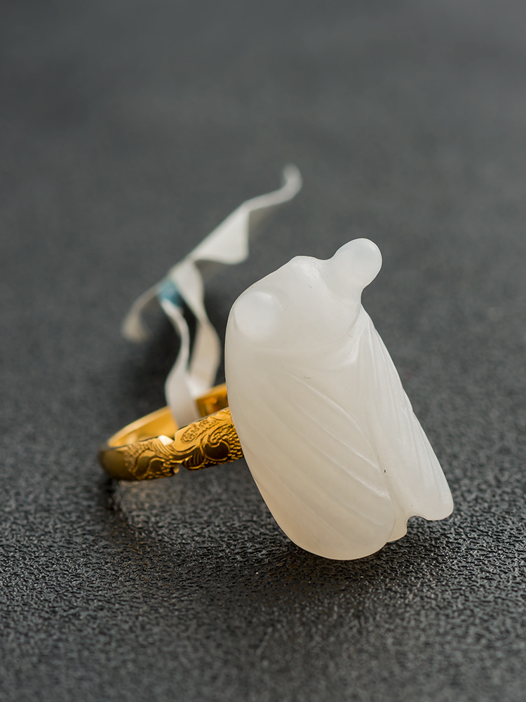 和田玉籽料蝉戒 18k金镶嵌 大气款