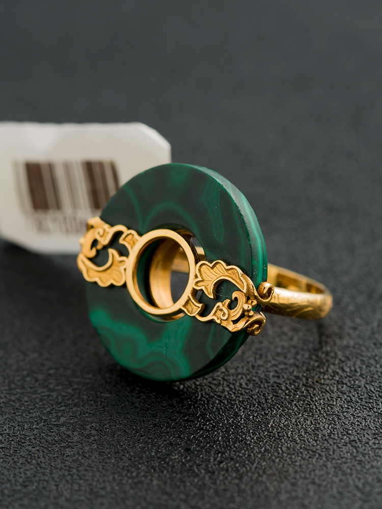 孔雀石面包圈戒指 18k金戒托镶嵌 大气款 戒圈可改大小 投诉