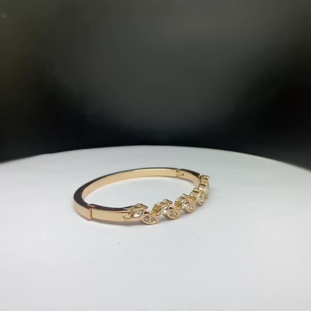 金色手镯批发原创设计女性树叶个性风镶钻细款欧美外贸服饰配饰品 投诉