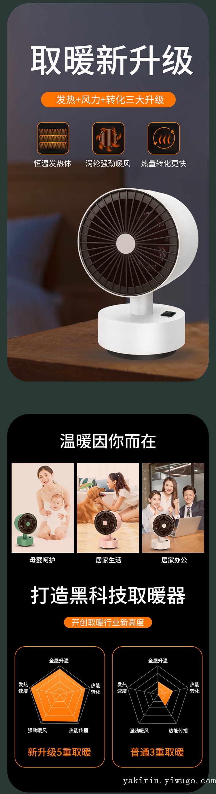 HR5807时尚简约圆形台式机械桌面暖风自动断电即热恒温迷你办公