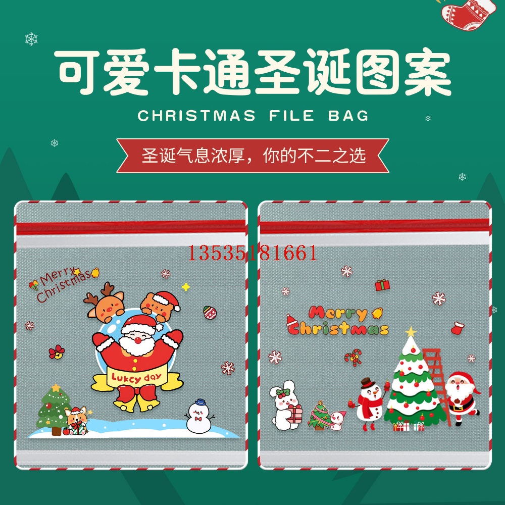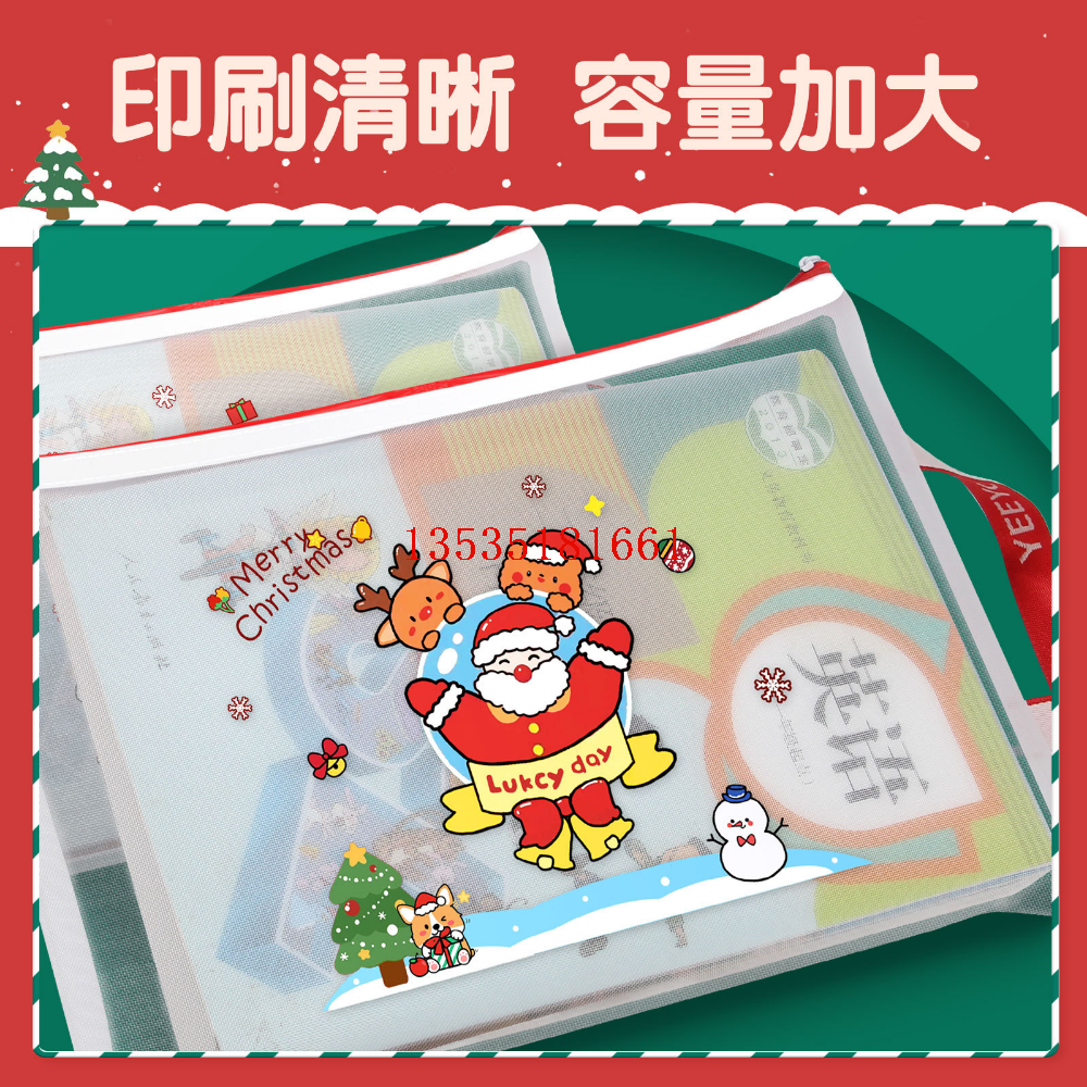 圣诞节创意卡通圣诞文件袋收纳袋学习办公大容量透明资料袋档案袋 投诉