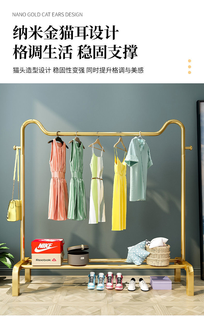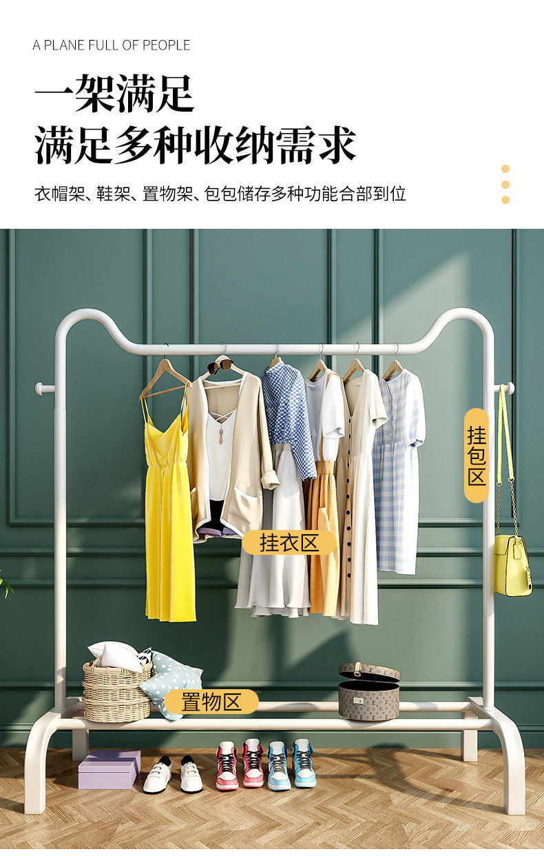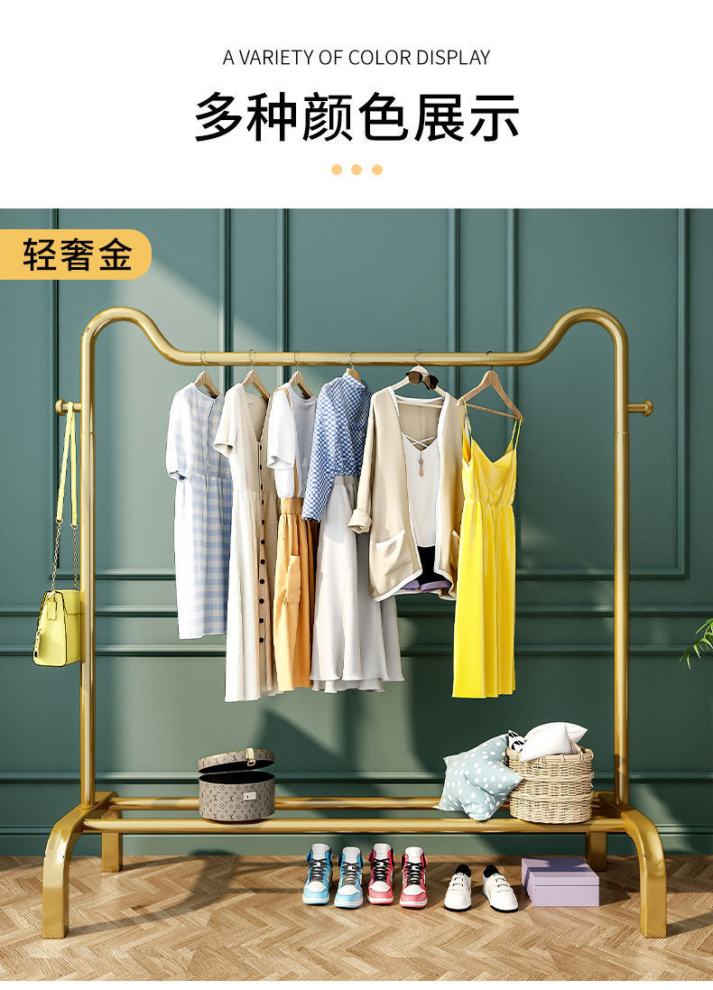 简易挂衣架落地家用卧室内晾衣架加粗双杆网红鞋架置物衣帽架子 English | 投诉