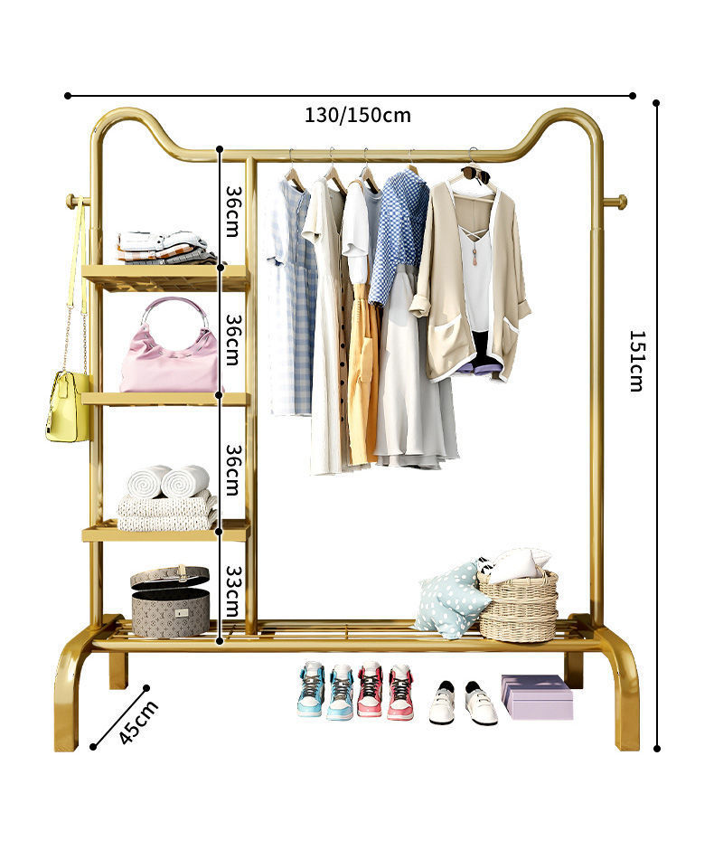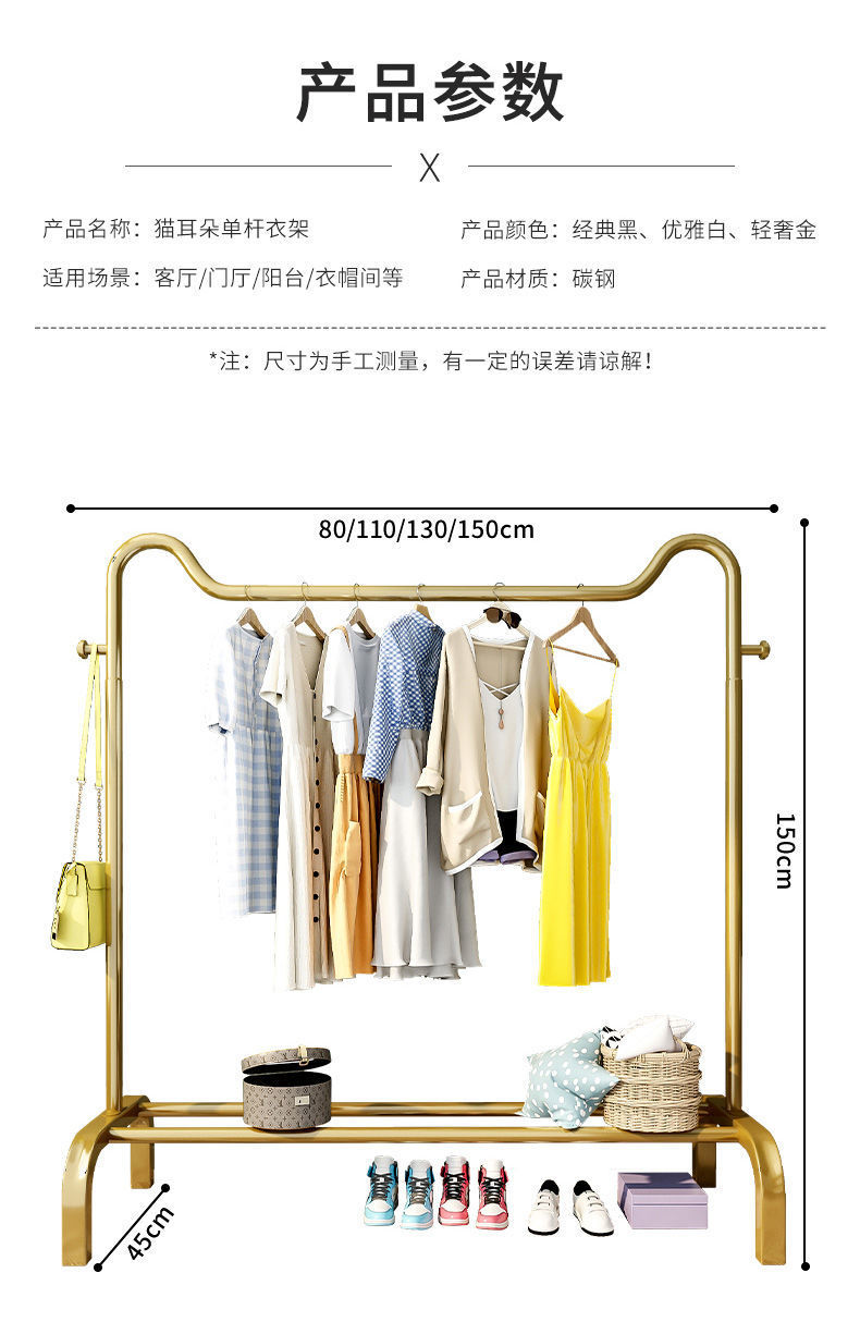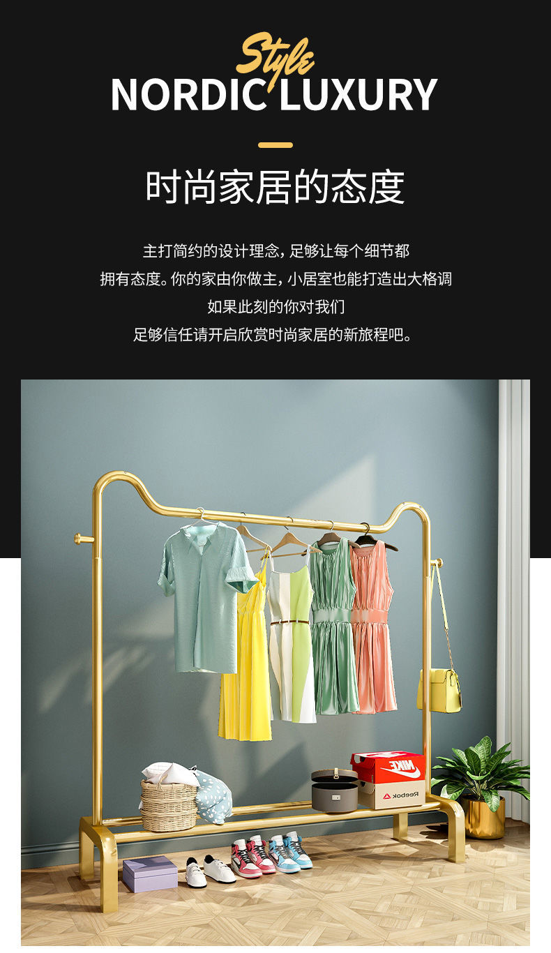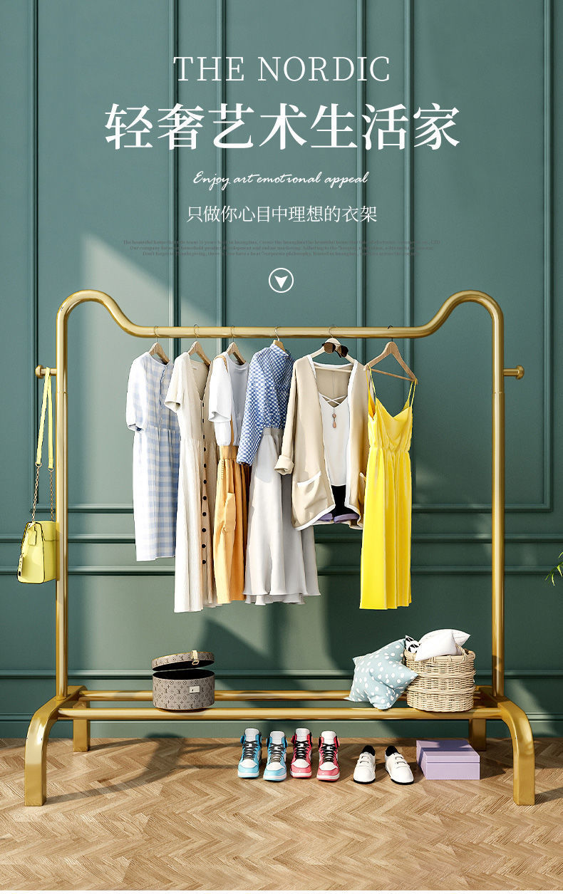 简易挂衣架落地家用卧室内晾衣架加粗双杆网红鞋架置物衣帽架子 English | 投诉