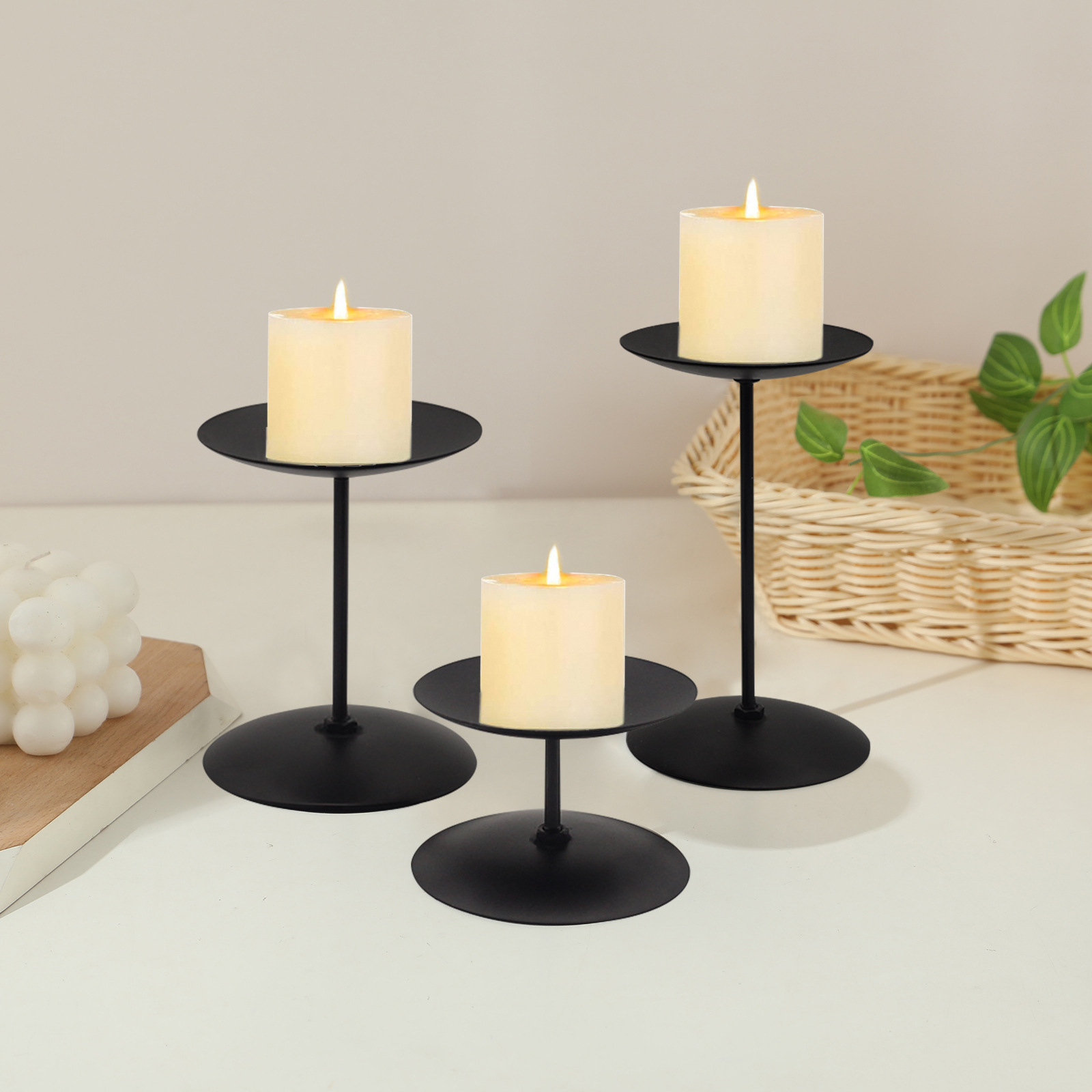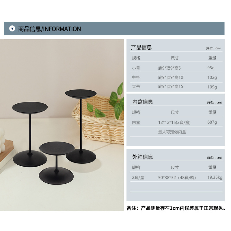 欧美式圣诞烛台复古托盘蜡烛台哑光圆盘黑色金属铁艺底座铁柱烛台 English | 投诉