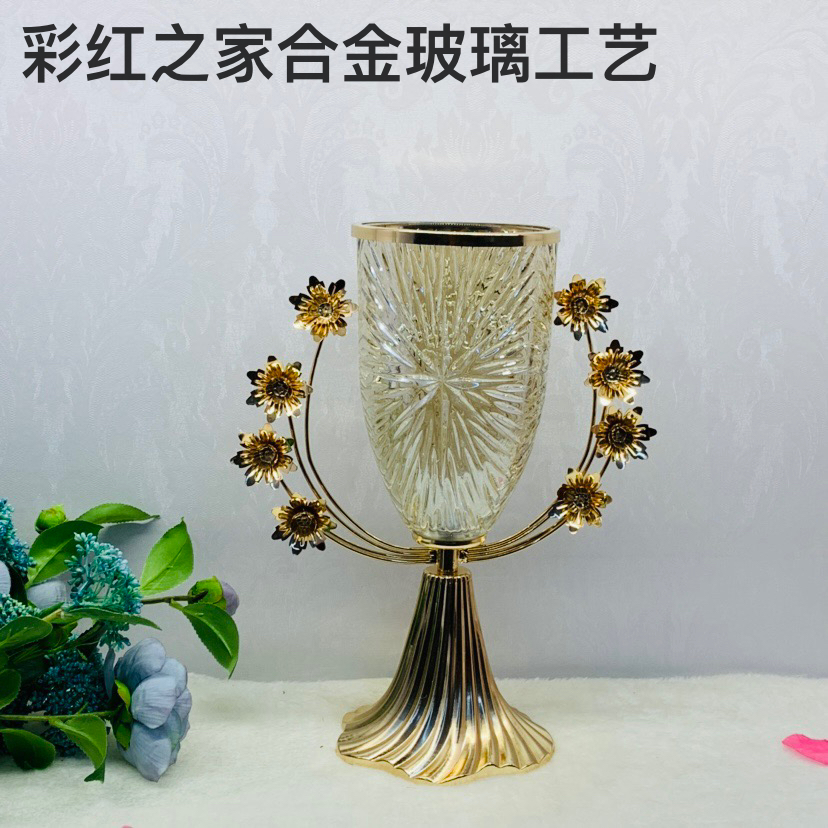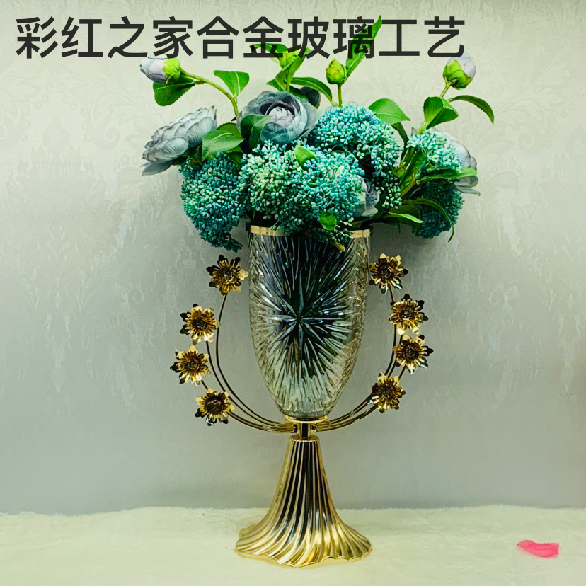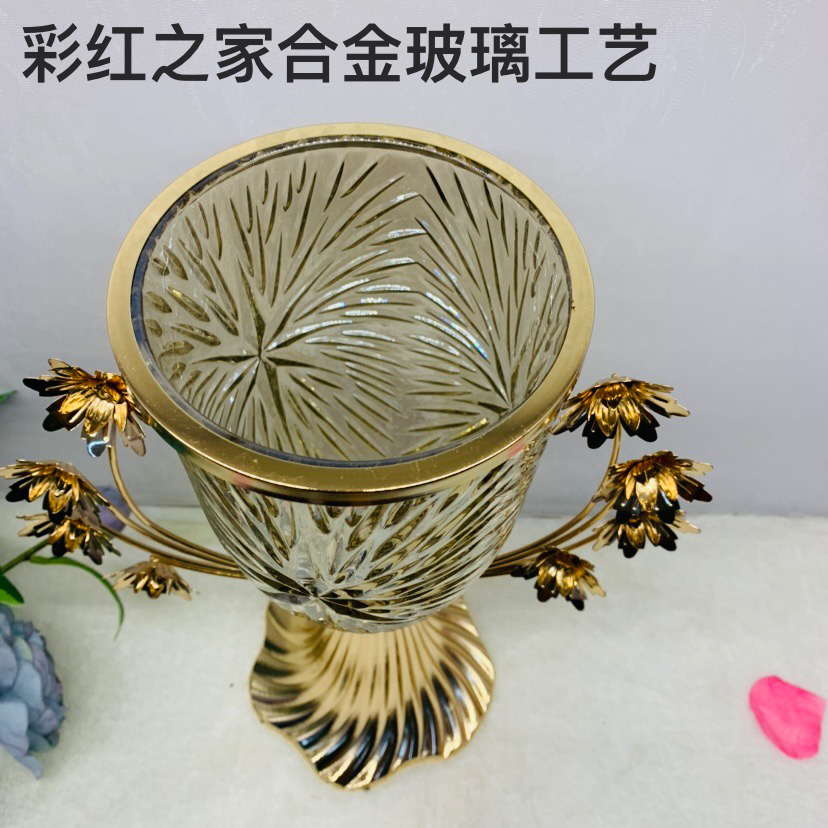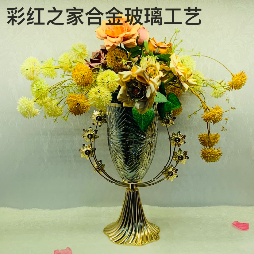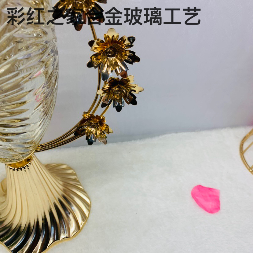 欧式家居金属玻璃花瓶客厅餐厅桌面欧式奢华创意样板房摆设 English | 投诉