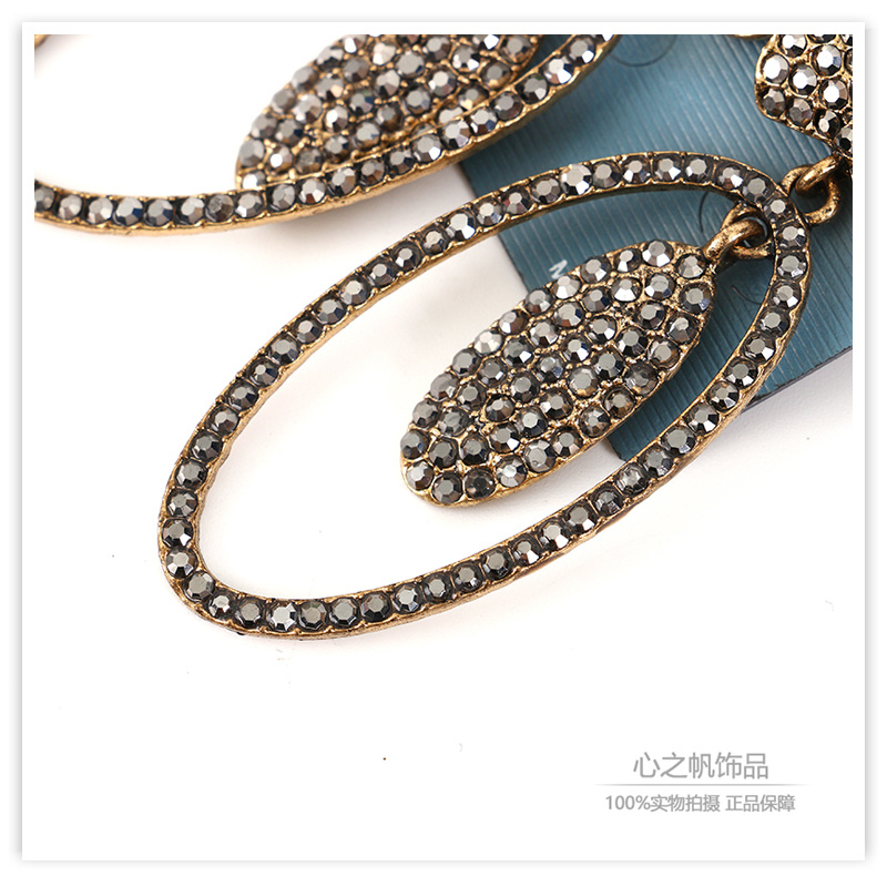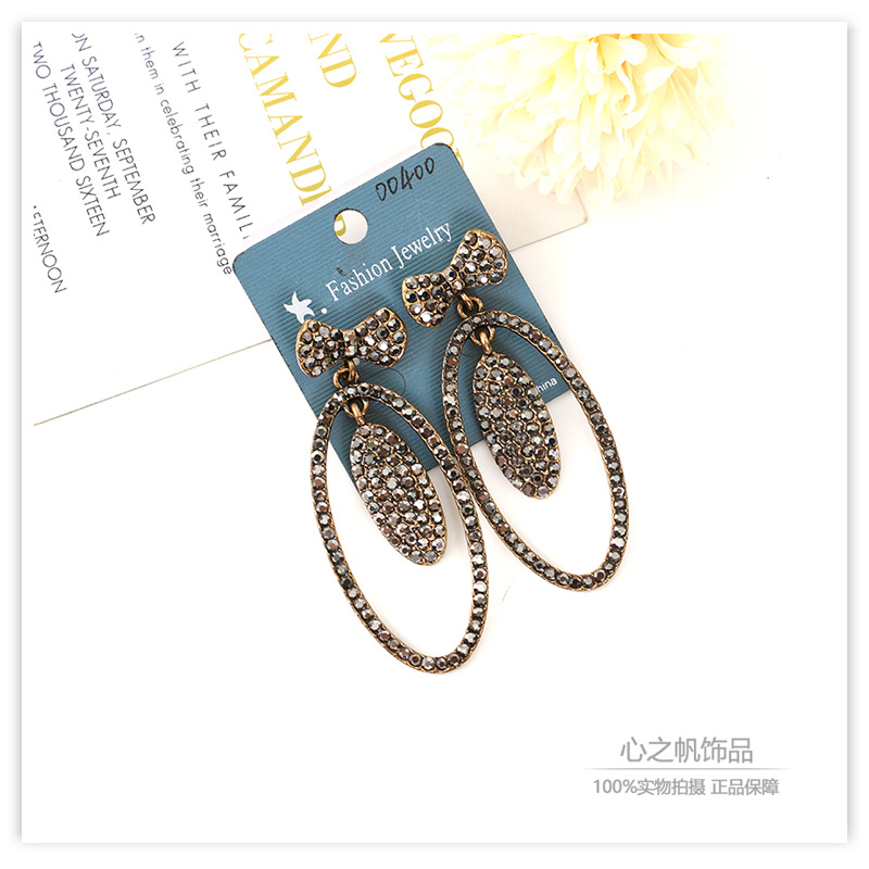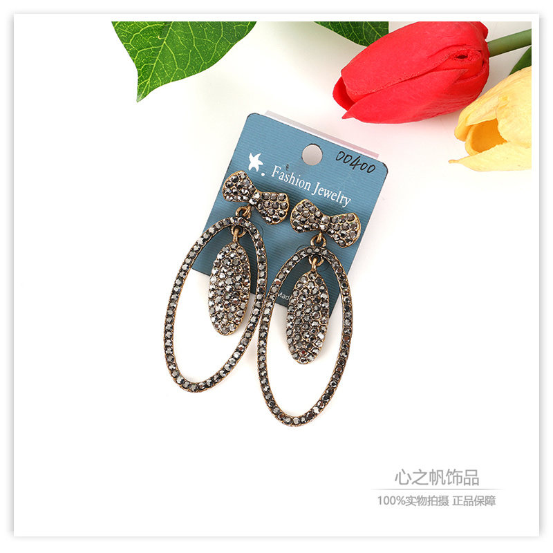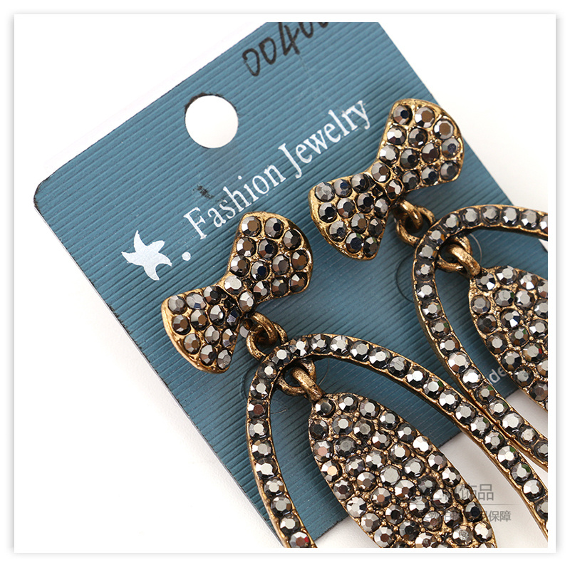 欧美时尚潮流网红同款微镶锆钻古铜色蝴蝶结椭圆耳环女耳饰配饰 English | 投诉