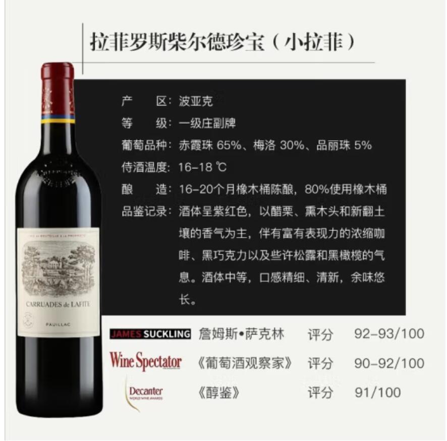 法国拉菲副牌 拉菲酒庄干红葡萄酒 2019年 750ml 拉菲珍宝 小拉菲专供出口 投诉