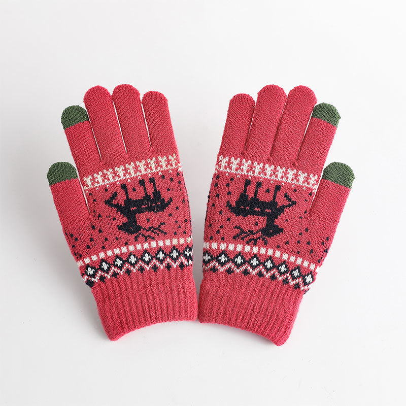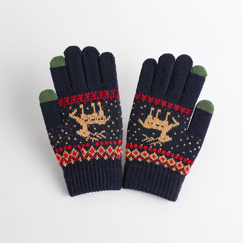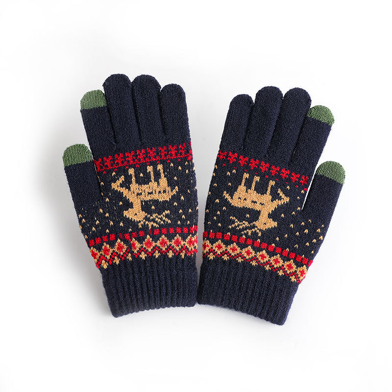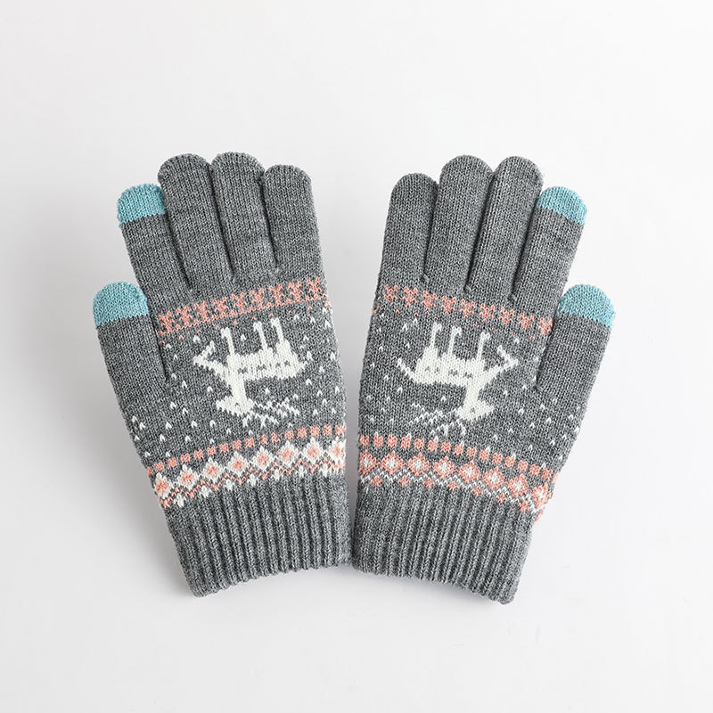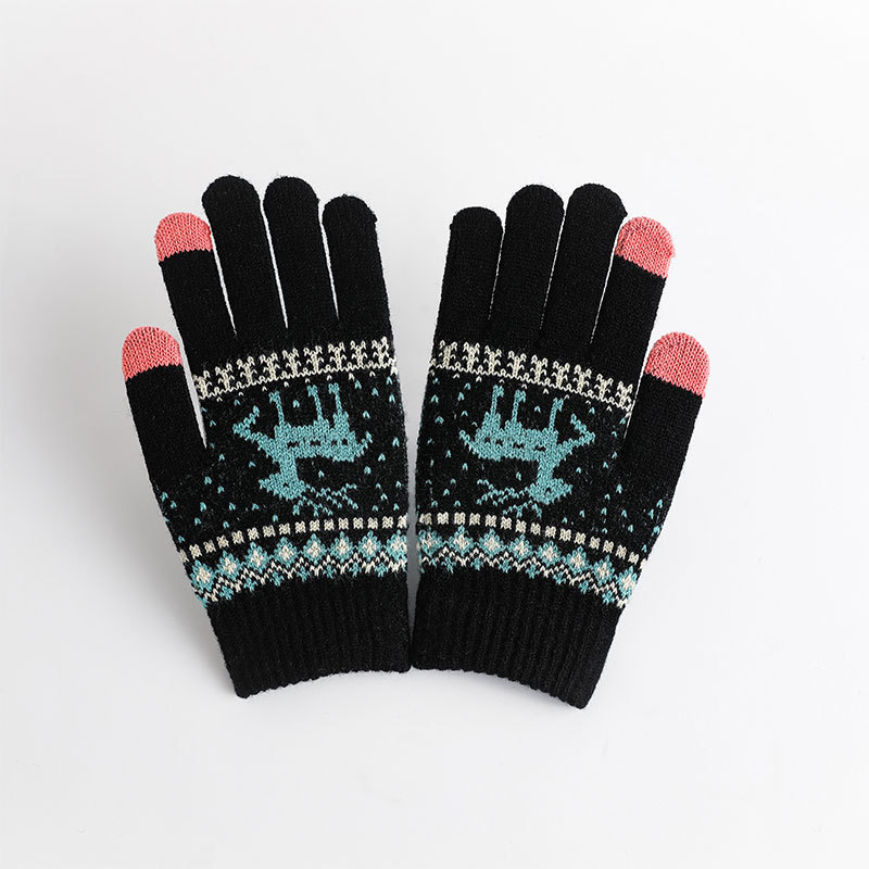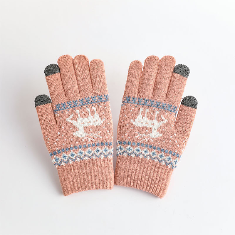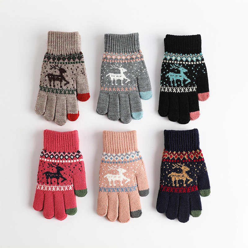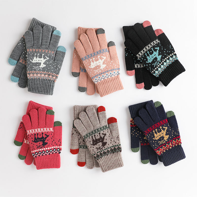 冬季手套保暖女士加绒加厚触屏针织手套韩版小鹿手套