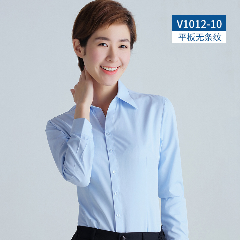 春秋季白衬衫女装长袖职业工作正装宽松工装打底V领衬衣韩OL English | 投诉