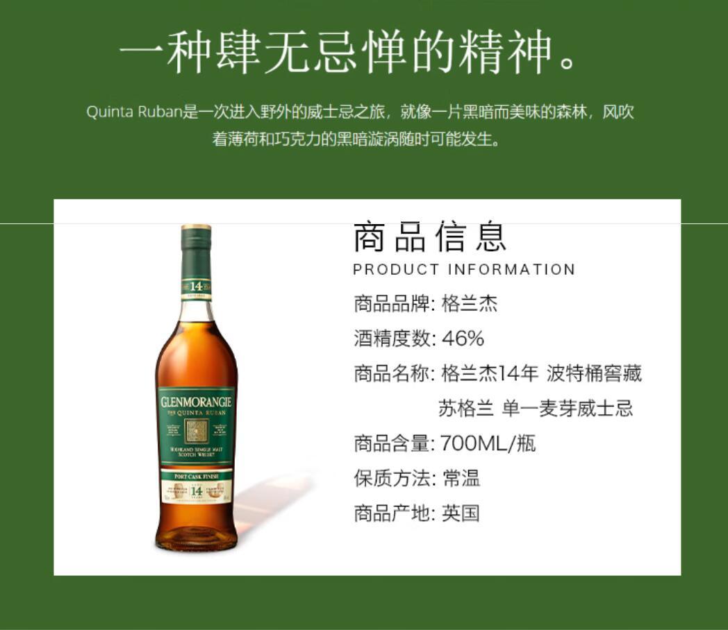 英国进口苏格兰格兰杰14年波特酒桶陈酿高地单一麦芽700ml 46%vol 投诉