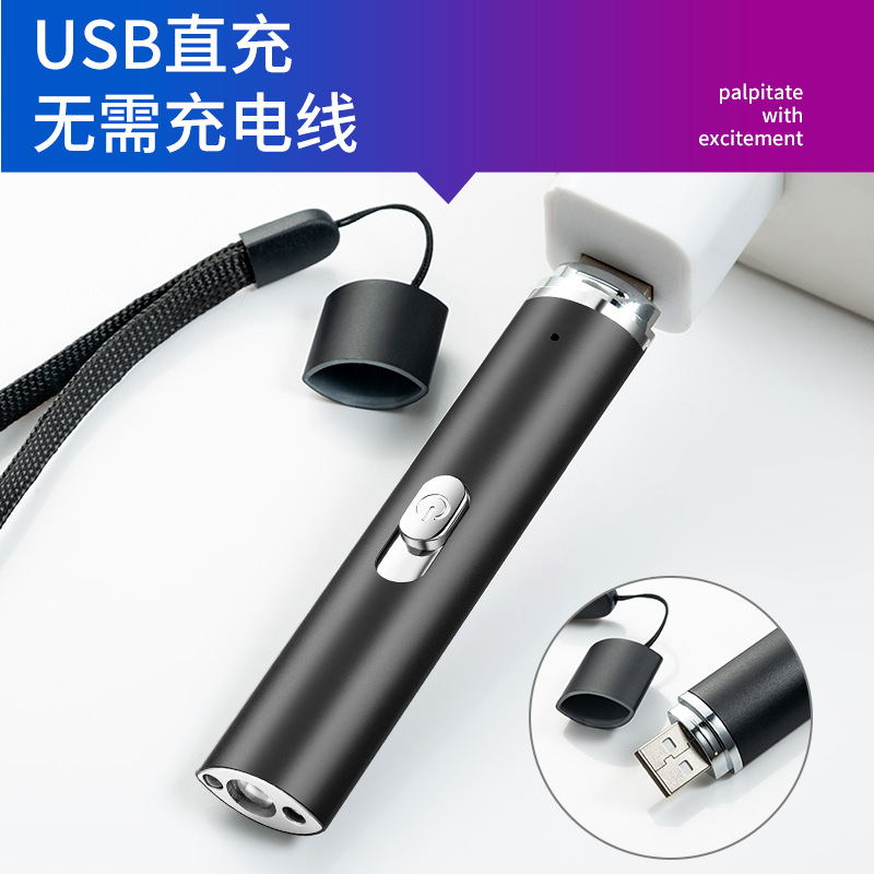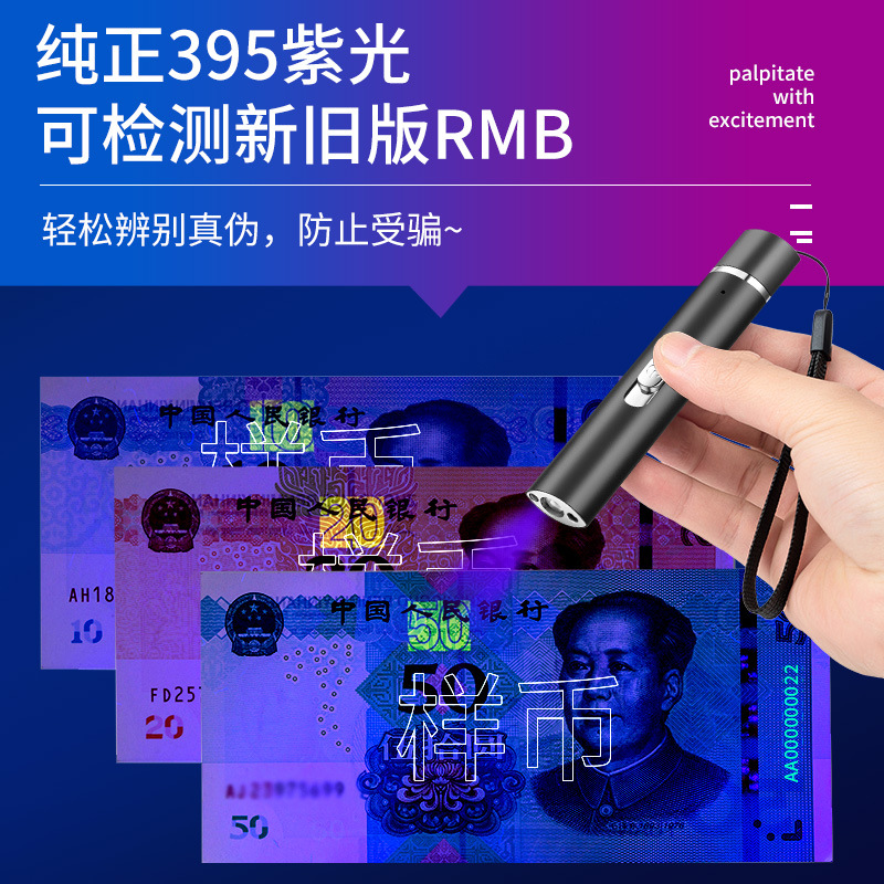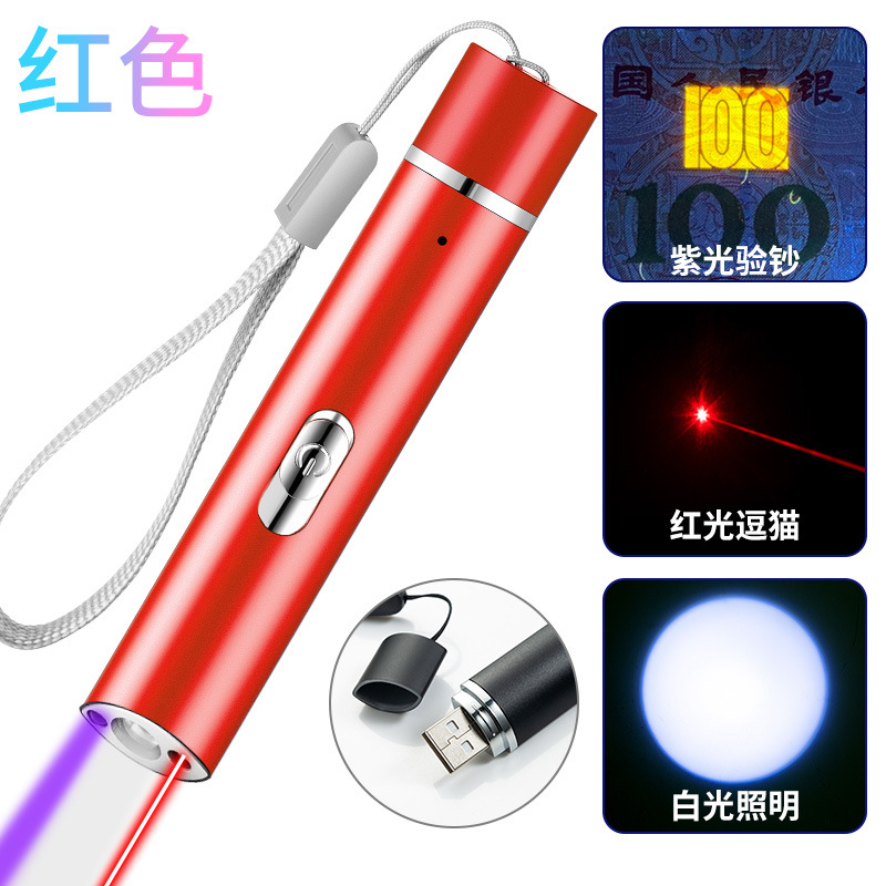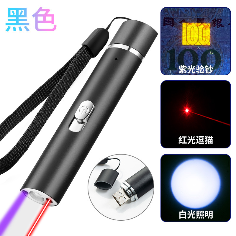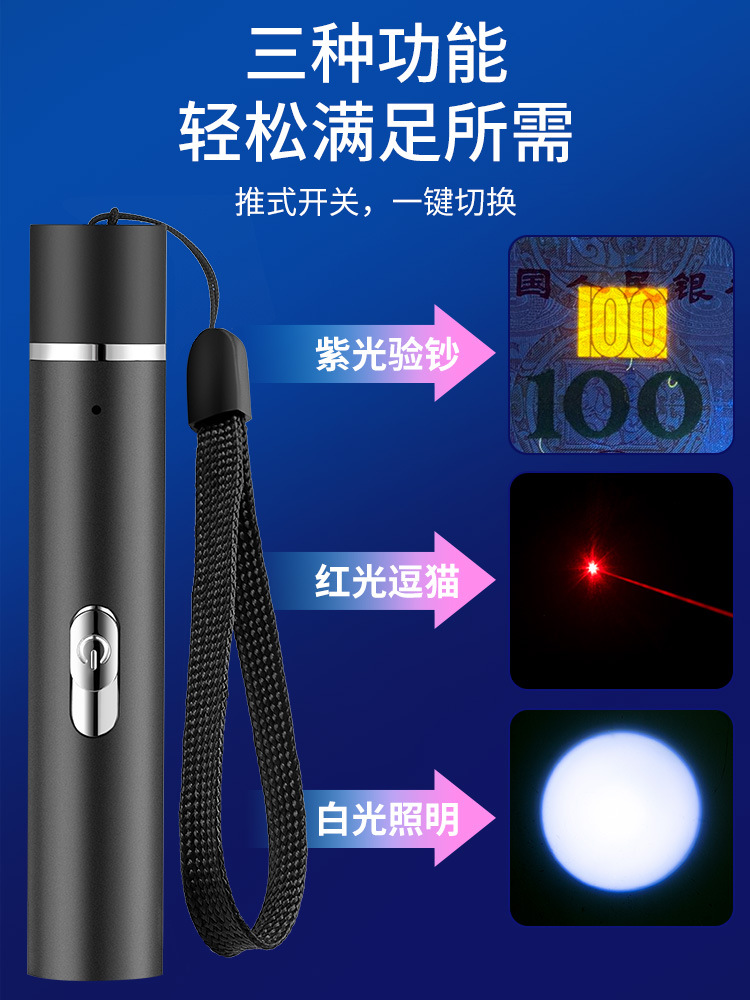 USB充电多功能手电筒 395nm紫光验钞紫外线激光红外线 照明手电
