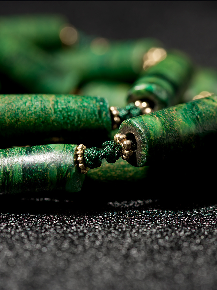 阳起石管+999足金金片编绳毛衣链项链