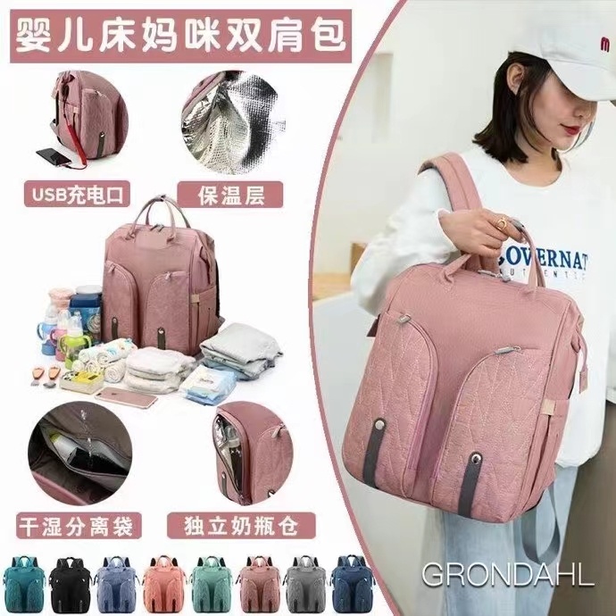 新款便携式折叠床妈咪包外出轻便大容量母婴包USD背包妈咪床包