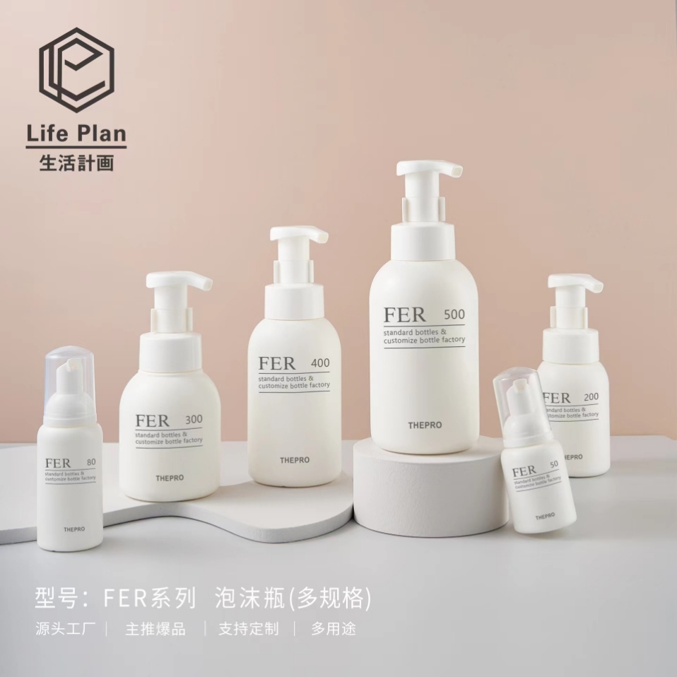 生活计画PE白色圆肩直底泡沫瓶多规格化妆品大容量500ml慕斯瓶 English | 投诉